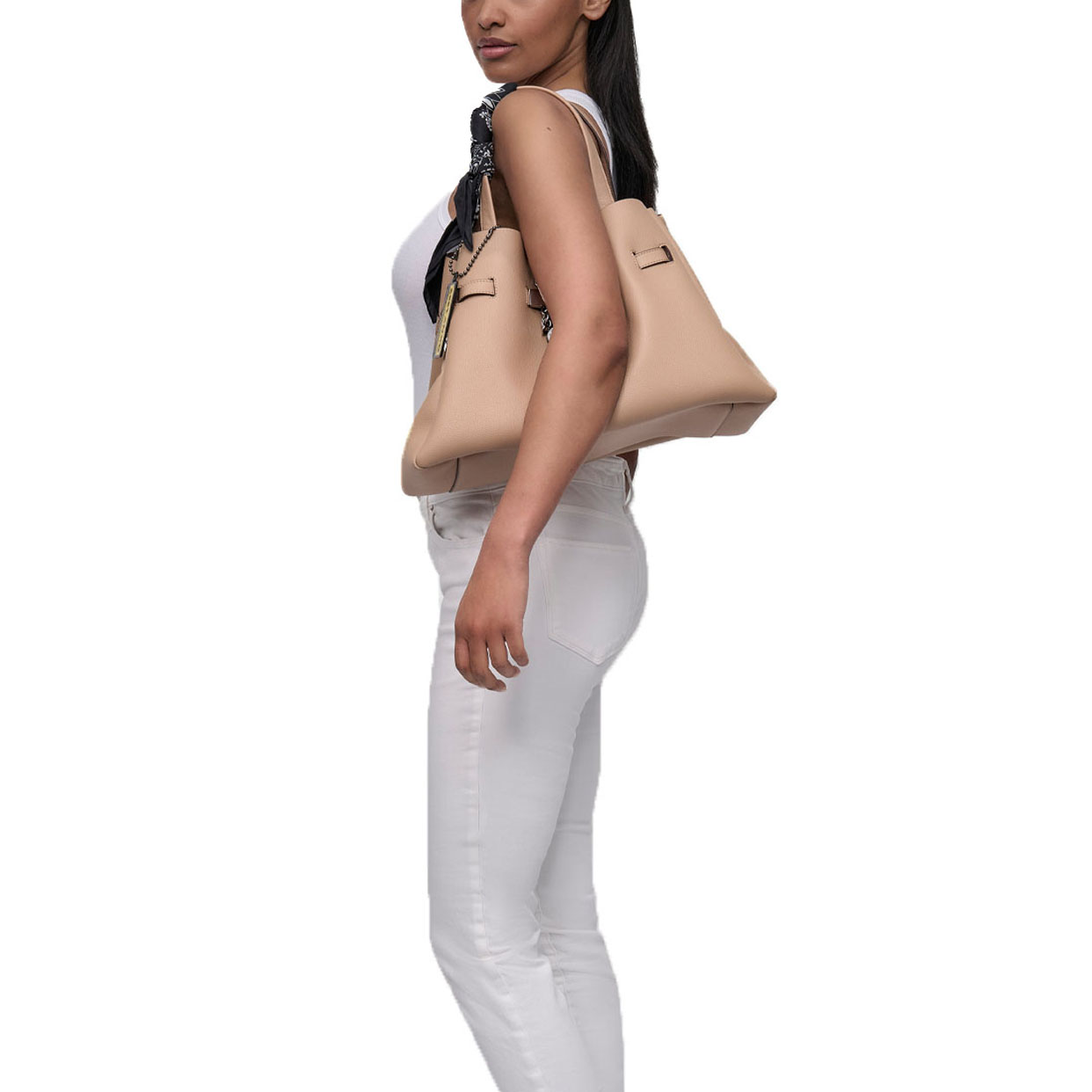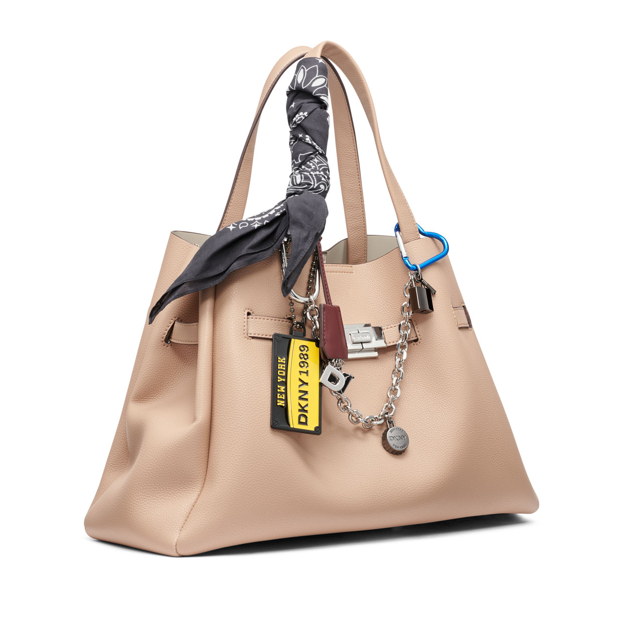 Add a sophisticated edge to your look with the DKNY Bryar Large Satchel in versatile black/silver. Featuring elegant top handles, roomy interior, and playful logo charms, this bag blends timeless style with functionality-perfect for upscale workdays or weekend outings.