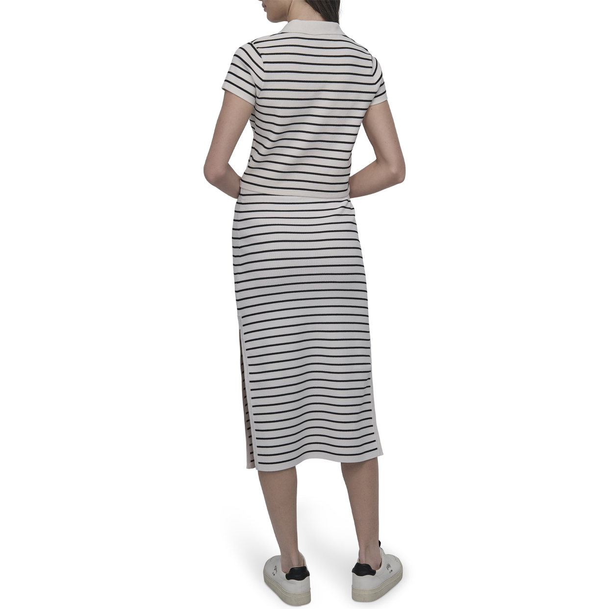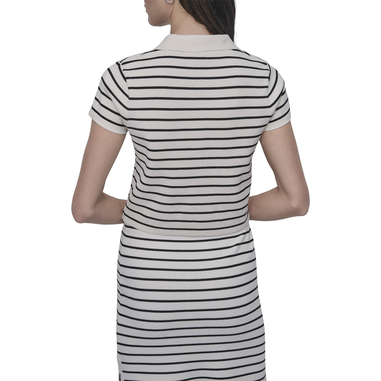 Cap Sleeve Polo with Logo Patch -Ivory/Black