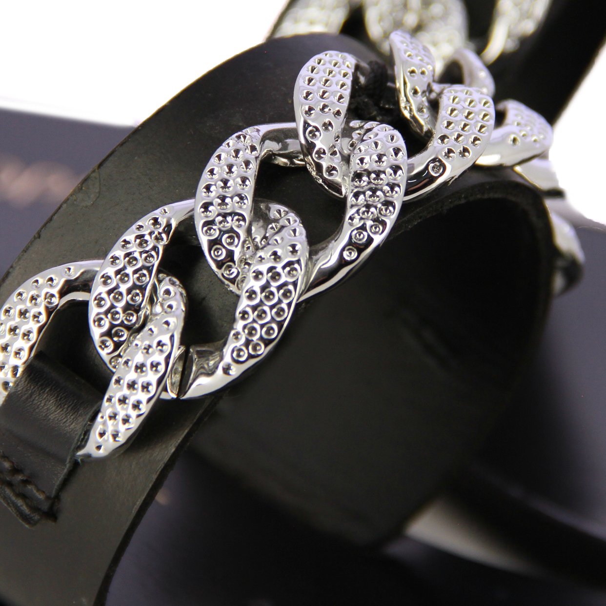 Make a statement with every step in these eye-catching Chain Sandals, where timeless design meets contemporary flair. Featuring bold chain detailing across the upper, these sandals instantly elevate any outfit with a touch of metallic edge.