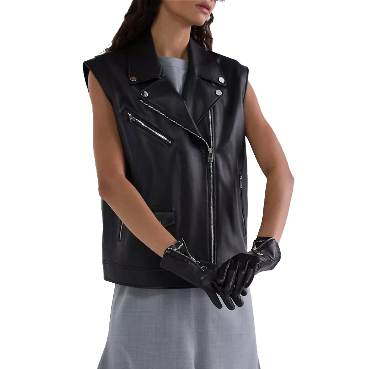 Faux Leather Biker Jacket -Black