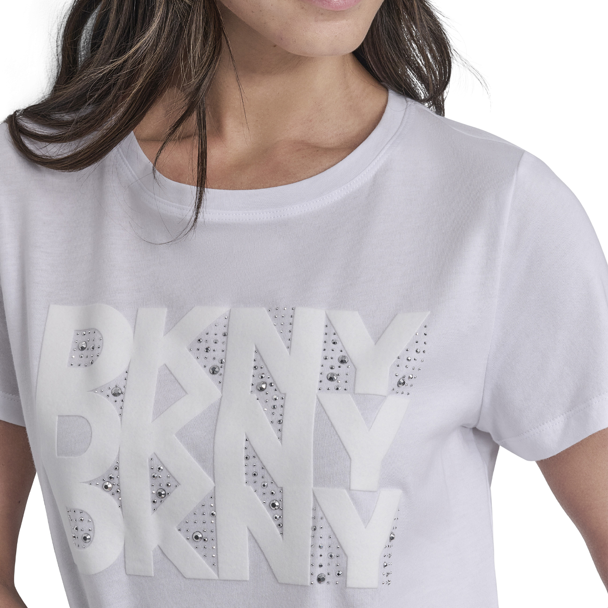 Flocking Rhinestone Logo T-Shirt -White/Silver
