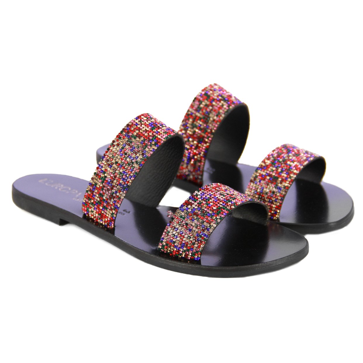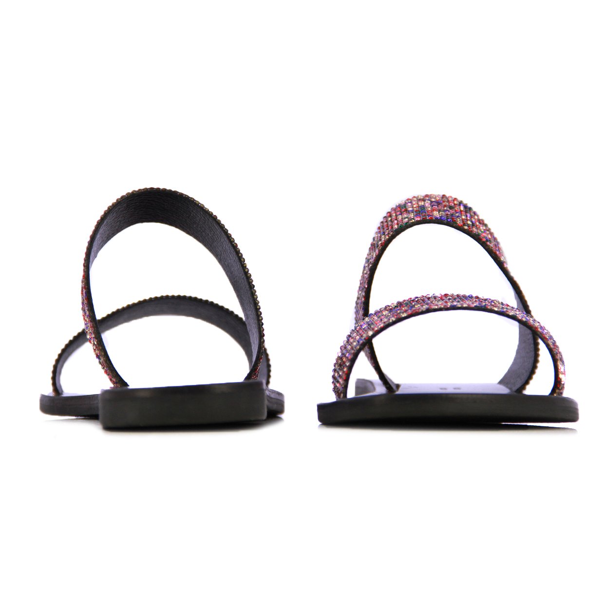 Step into effortless glamour with the Glitz Glide Sandal, your go-to for understated sparkle and all-day comfort. Featuring sleek double straps embellished with dazzling rhinestones, these slip-ons are made to shimmer with every move.