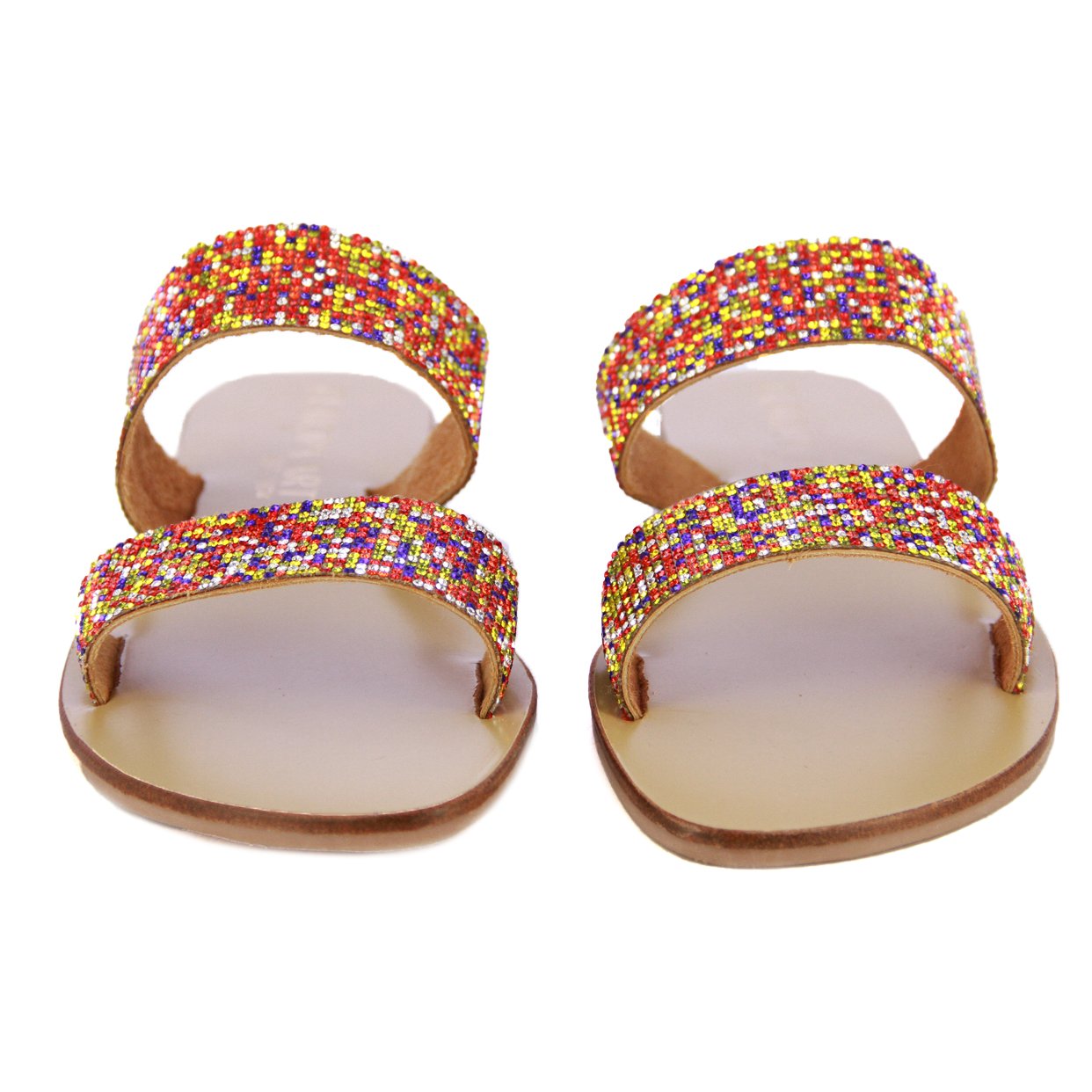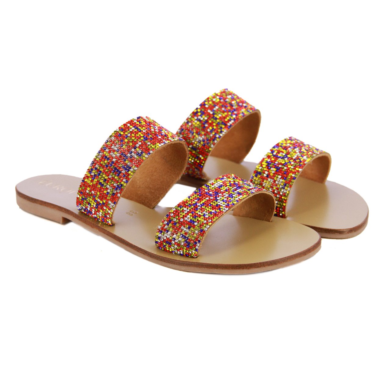 Step into effortless glamour with the Glitz Glide Sandal, your go-to for understated sparkle and all-day comfort. Featuring sleek double straps embellished with dazzling rhinestones, these slip-ons are made to shimmer with every move.