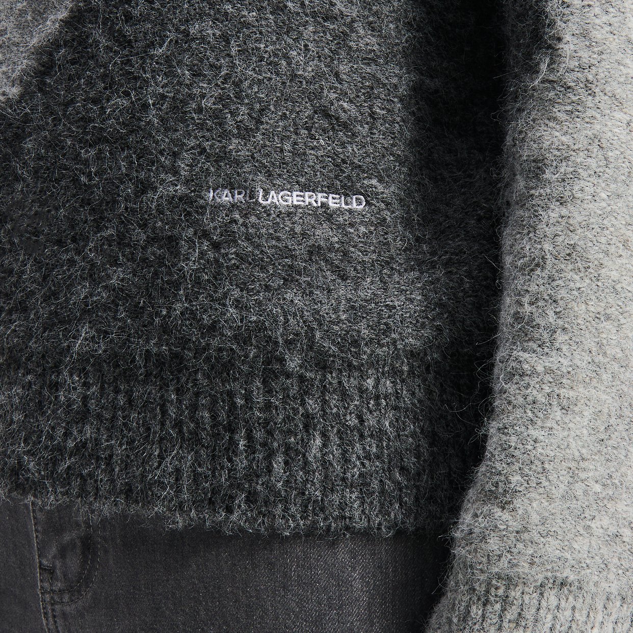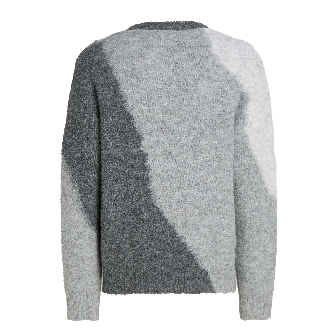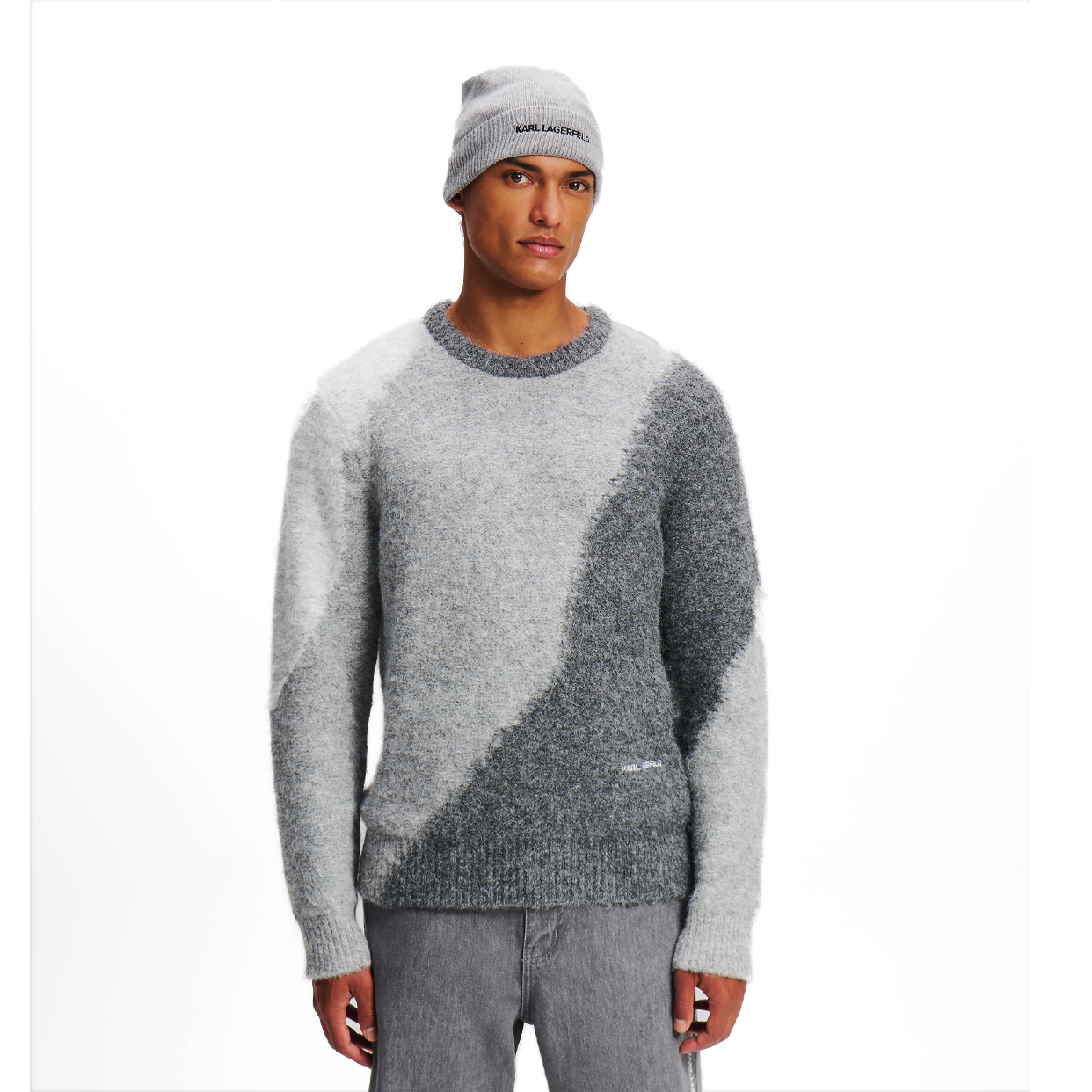 This classic crew neck sweater features a striking abstract design in varying gray tones and a contrasting satin embroidered KARL LAGERFELD logo at the chest for a signature finish.