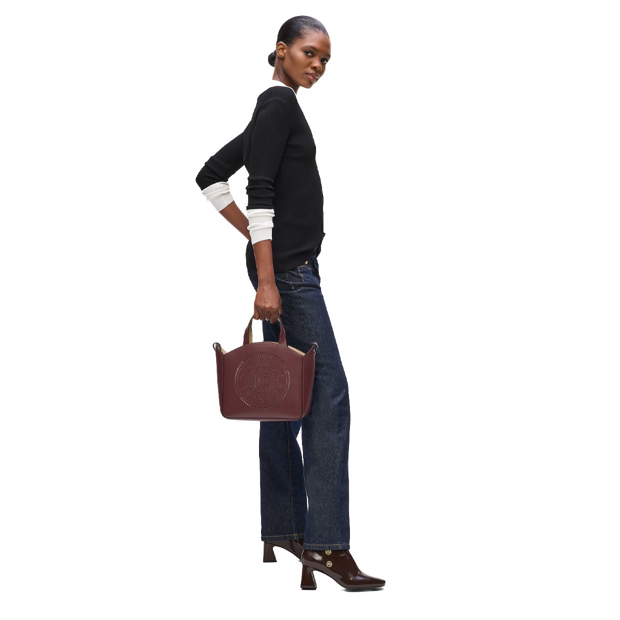 K/Circle Perforated Small Tote Bag -Windsor Burgundy