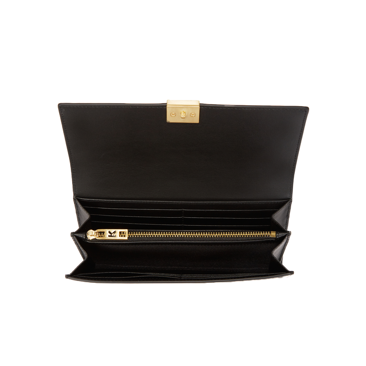 Featuring multiple inner card slots and compartments, along with a zipped coin purse, this spacious continental wallet is an elevated essential. The square metal plaque, elegantly engraved with the KARL LAGERFELD logo, adds a refined finish.