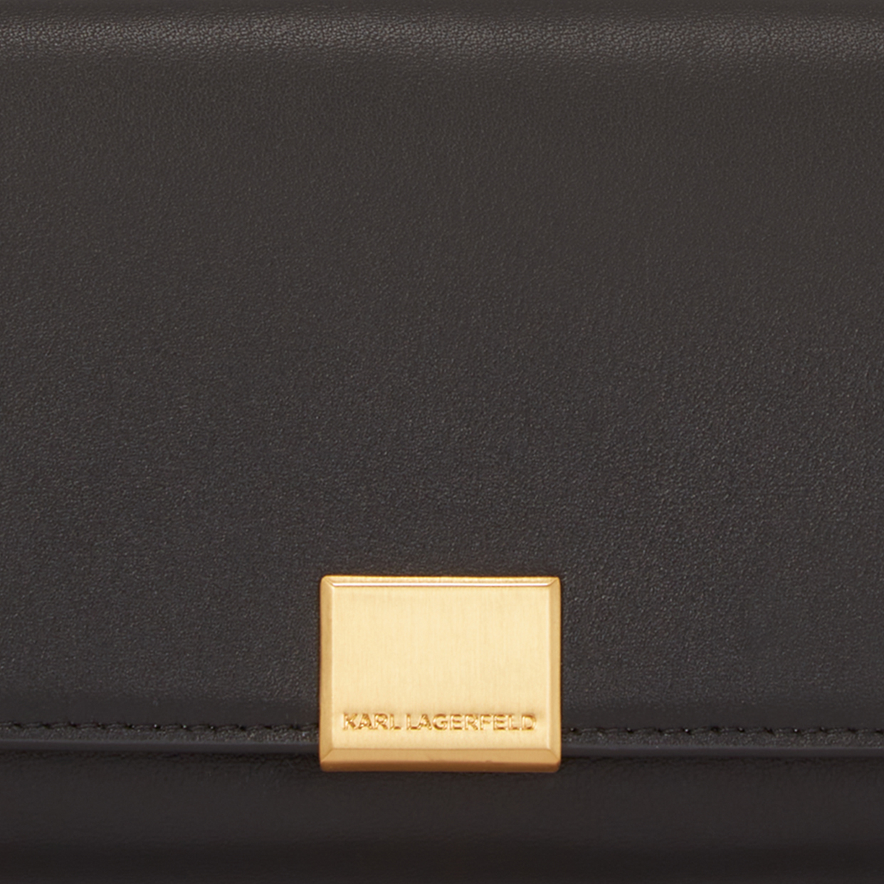 - Square metal plaque engraved with the KARL LAGERFELD logo at the flap closure