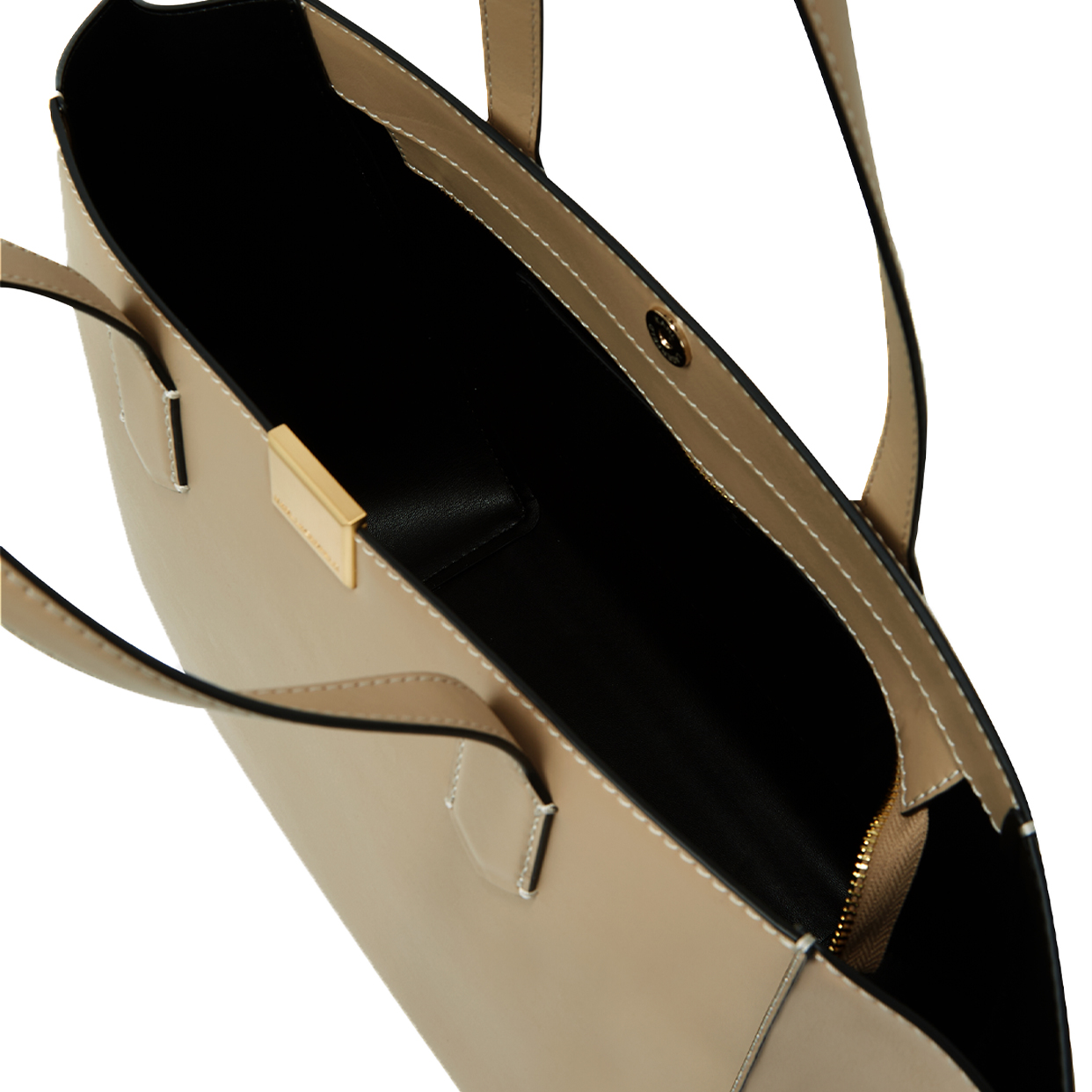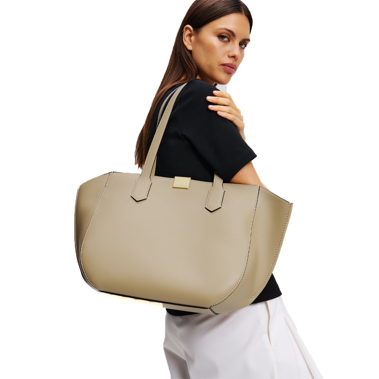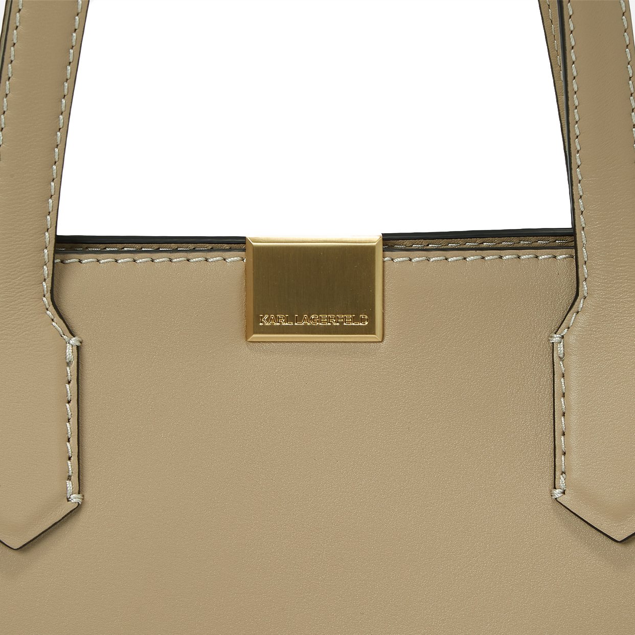 This tote bag features a spacious east-west silhouette, perfect for daily essentials and even your laptop. Twin straps offer versatile carrying options, while a chic square metal plaque showcasing the KARL LAGERFELD logo adds a touch of iconic style.