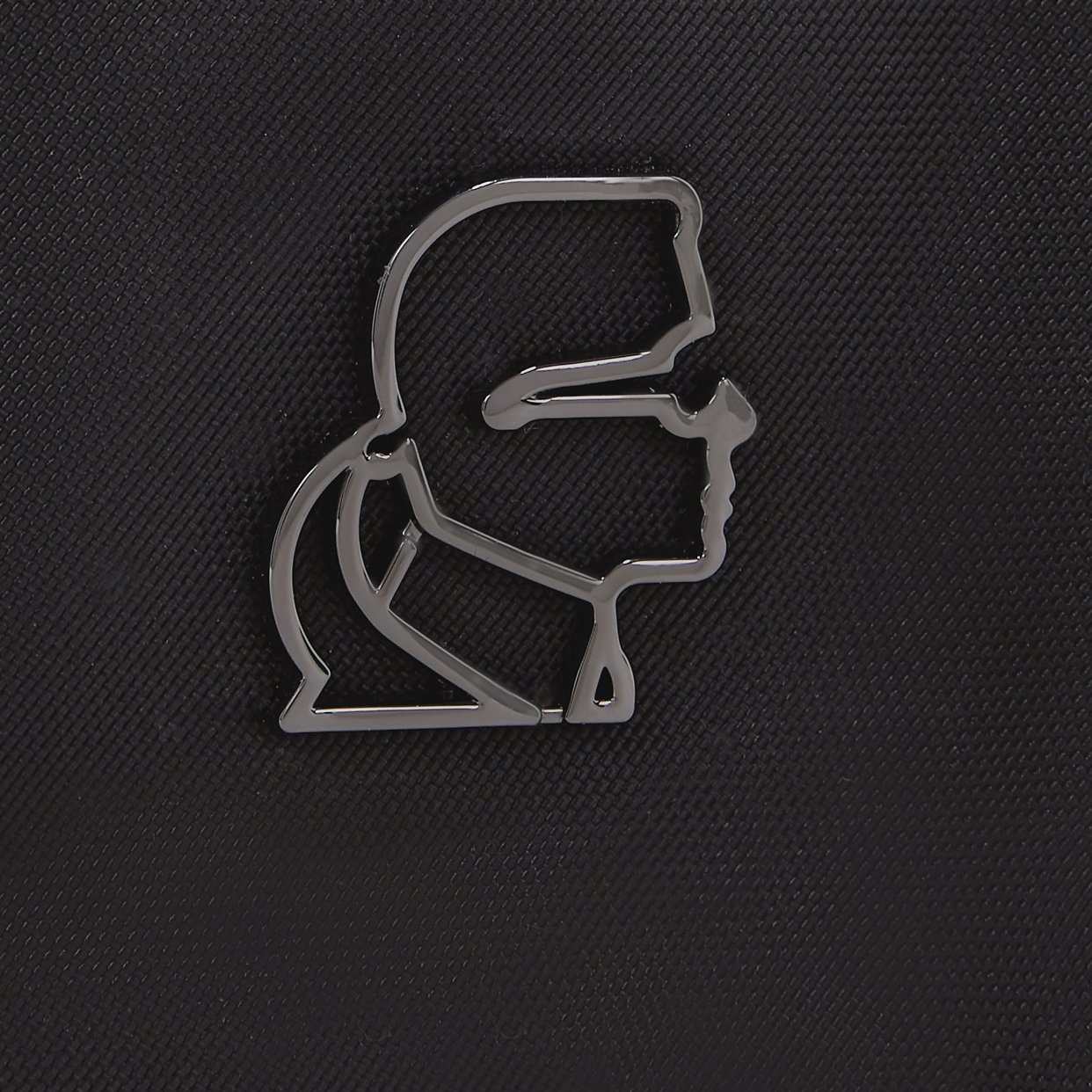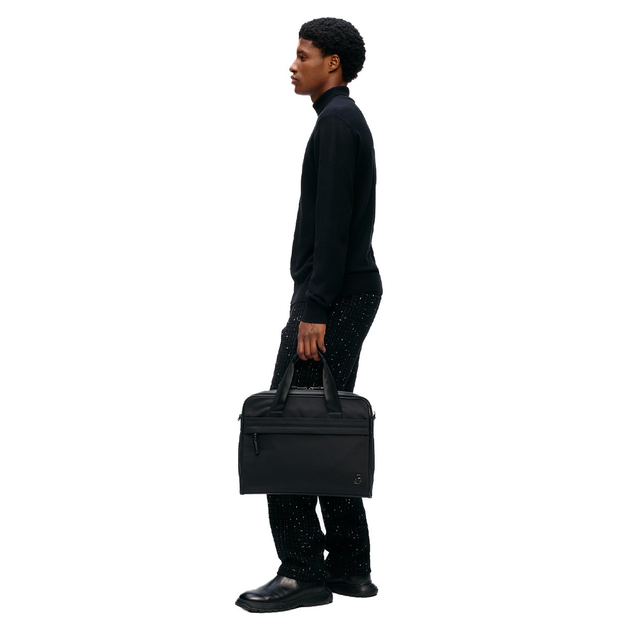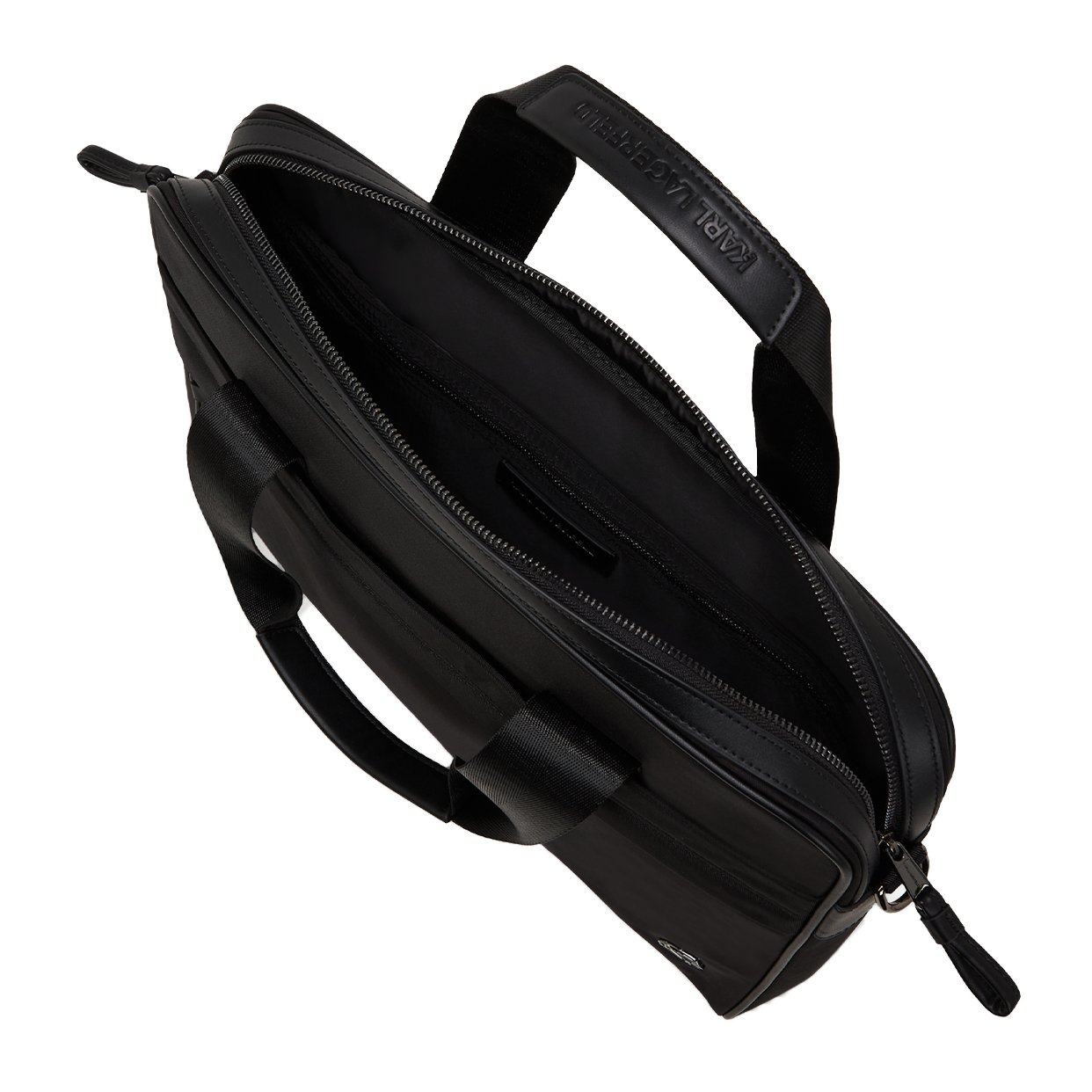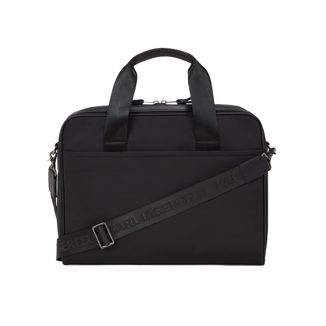 Elevate your professional wardrobe with this briefcase featuring a secure zip closure, front pocket, and twin handles with a detachable strap for easy carrying. Accented with the Karl Kameo motif, it marries style with functionality.