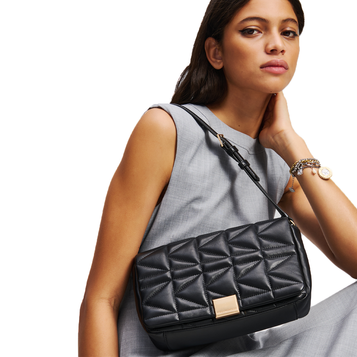 Soft, pillowy quilted charm meets sleek sophistication in this K/Kuilt shoulder bag. Featuring a secure push-lock closure and adjustable shoulder strap, the medium-sized silhouette is finished with a chic KARL LAGERFELD metal plaque at the front. Embellished with quilted details and plush texture, the trademark ‘K’ stitching adds a unique dimension to this modern classic
