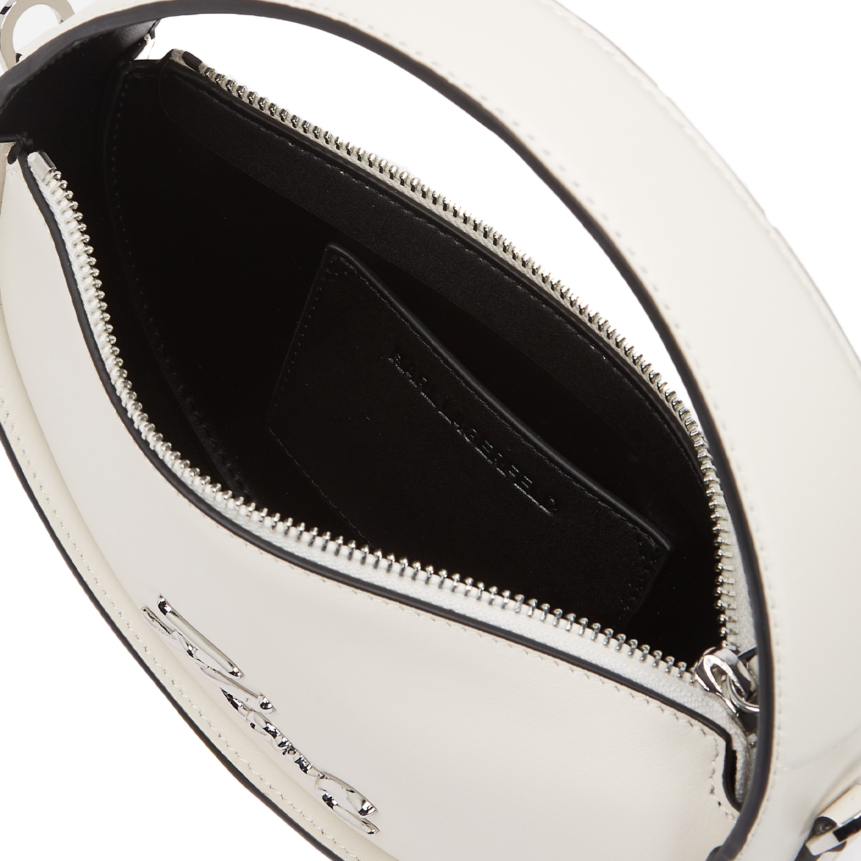 Make a sleek style statement with the K/Signature Round Crossbody Bag, a bold yet compact accessory that blends modern edge with timeless sophistication. Defined by its unique circular silhouette, this standout piece is crafted from smooth, high-quality materials and finished with KARL LAGERFELD’s iconic signature logo in gleaming metal hardware.