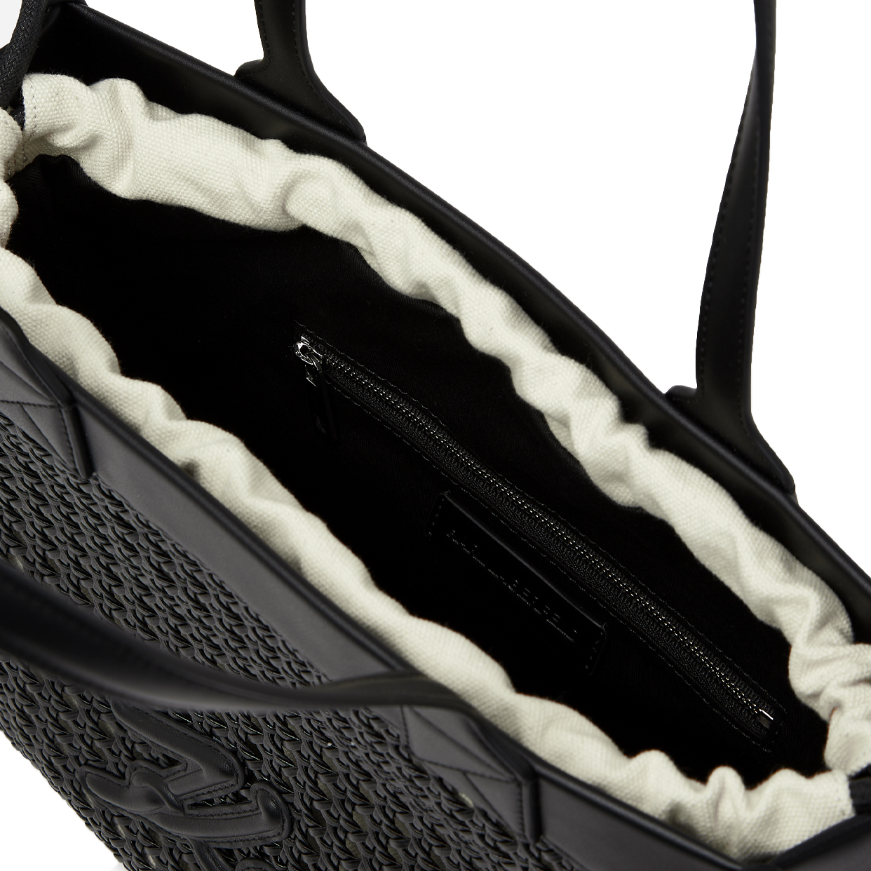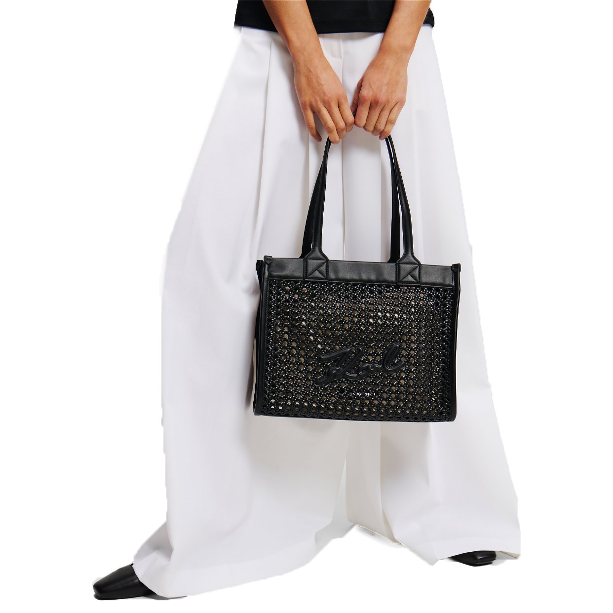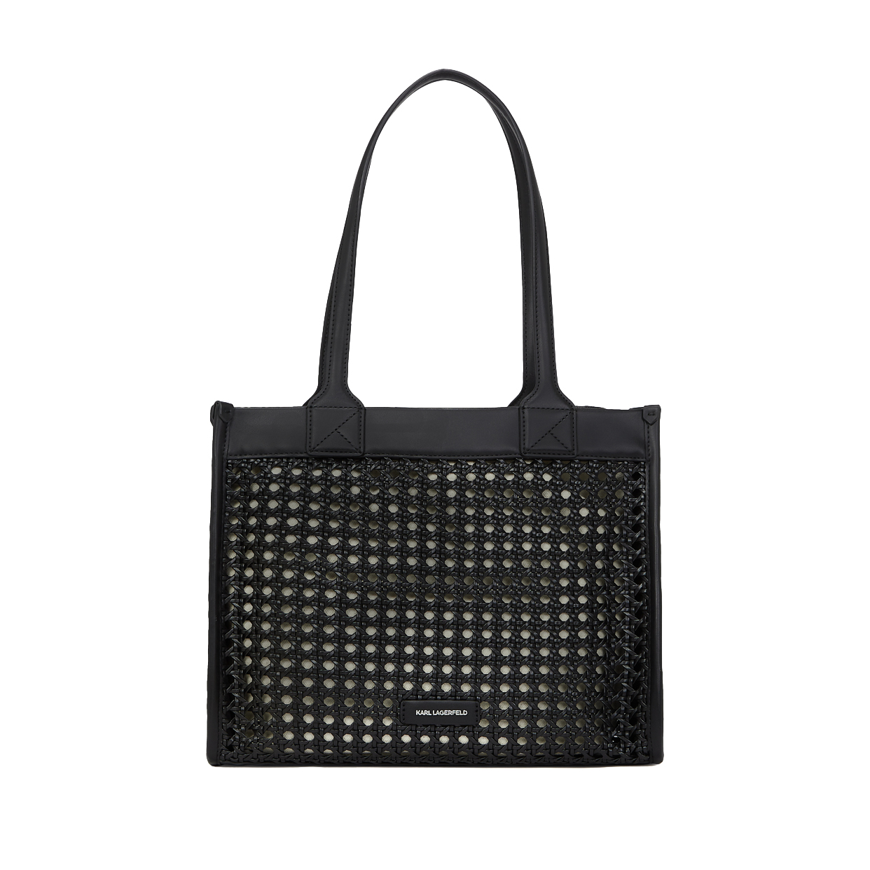 Blending nostalgic influences with modern sensibilities, this medium tote bag features a retro perforated rattan design complemented by the iconic KARL Signature. Featuring durable technical leather carry handles and an internal pouch to keep essentials organized, it merges style with practicality.