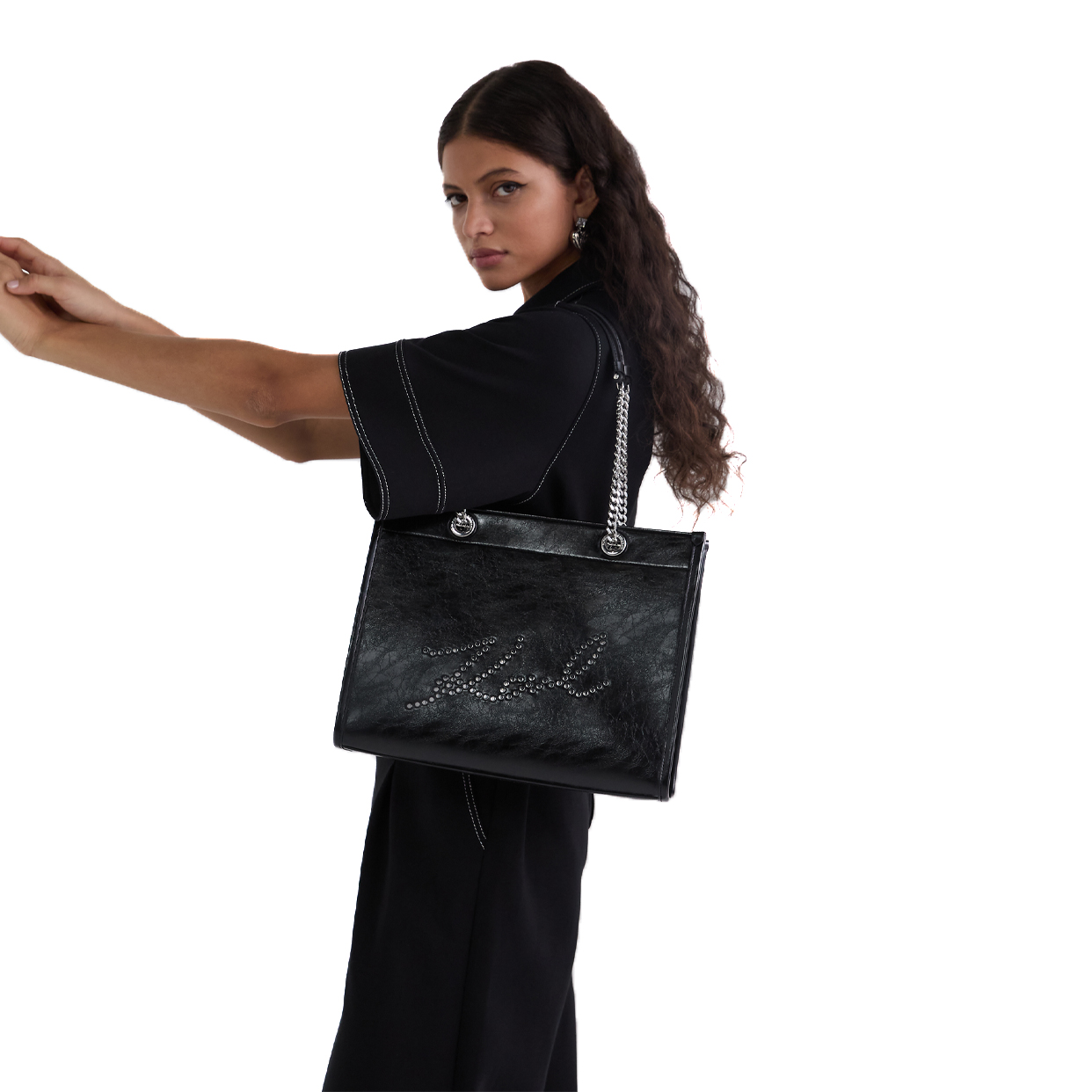 Elevate your everyday style with the K/Skuare Medium Tote Studs Bag, Â a bold fusion of structure and edge. This standout tote features a sleek, boxy silhouette accented with sharp metallic studs for a contemporary, rebellious twist on a classic shape. Perfect for fashion-forward individuals who appreciate form, function, and attitude.