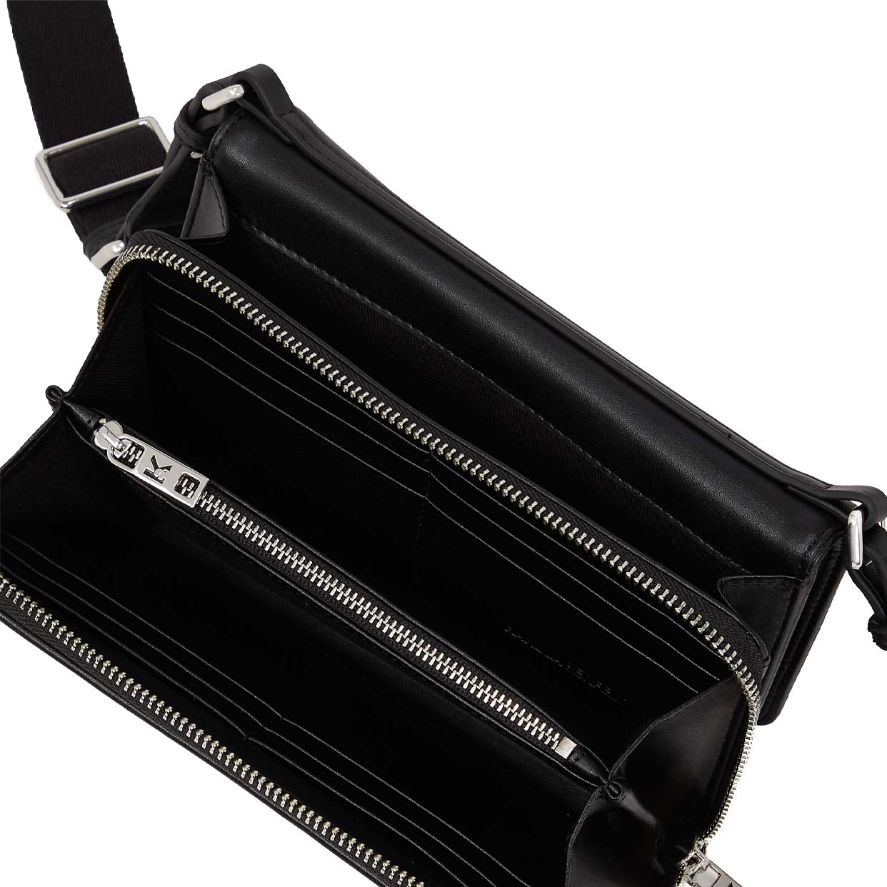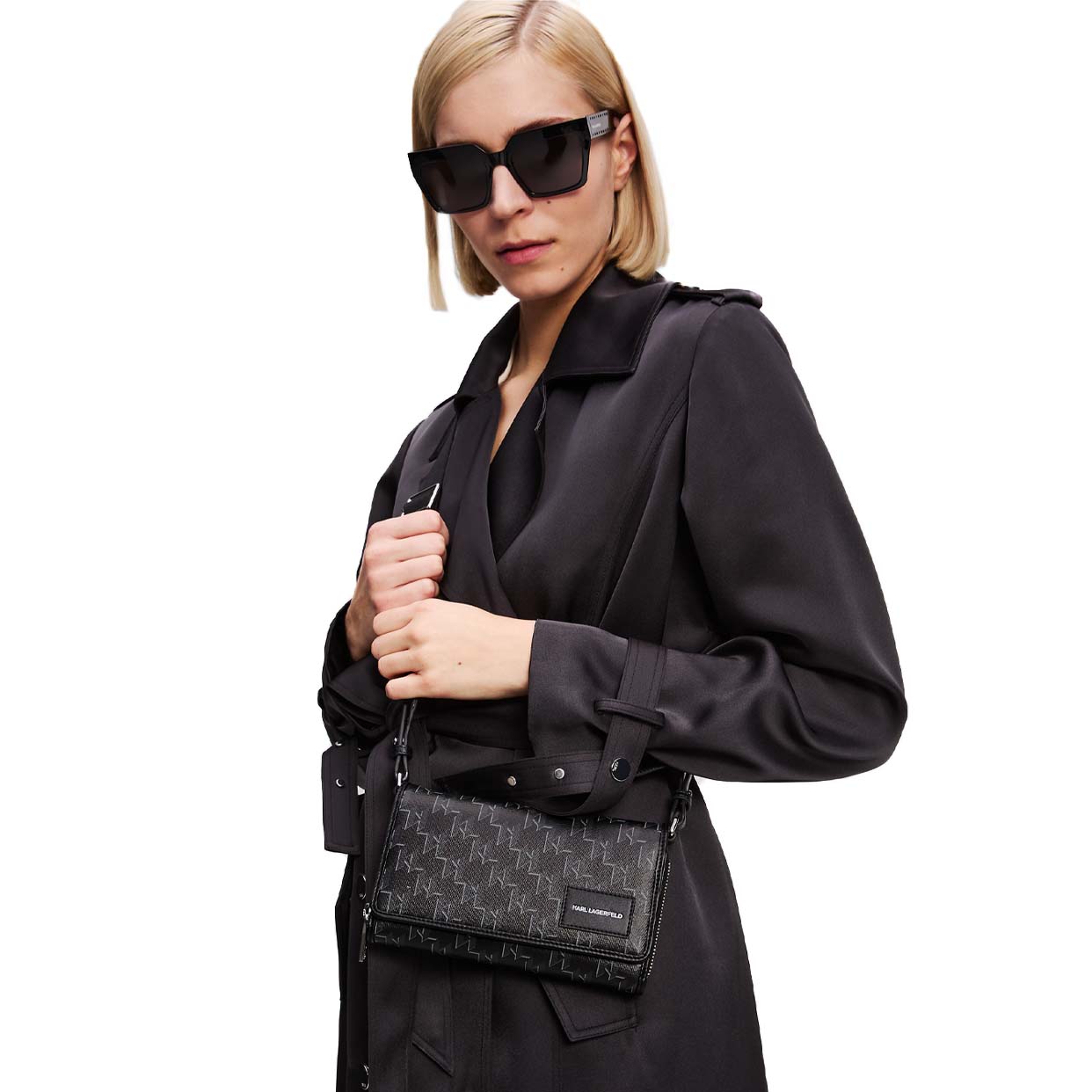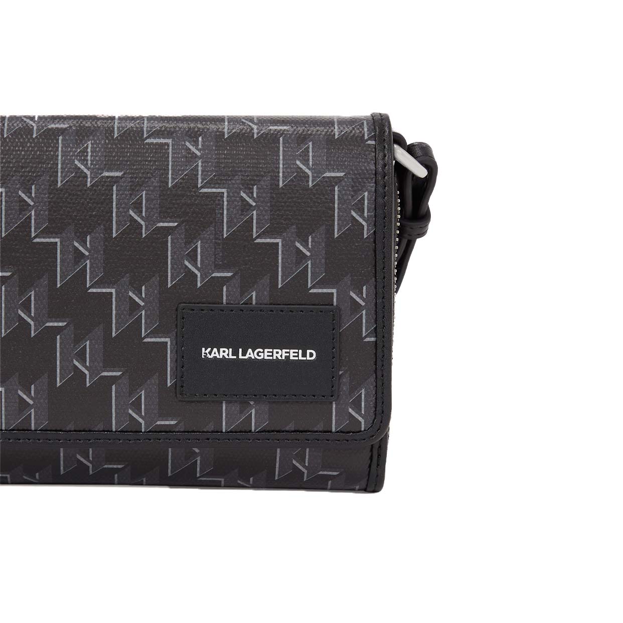 A contemporary companion for those on-the-go days, this crossbody wallet features a secure flap closure with an internal zip, ensuring your essentials stay safe. With multiple card slots and an adjustable strap, complemented by an iconic Karl Monogram design, it combines practicality with style.