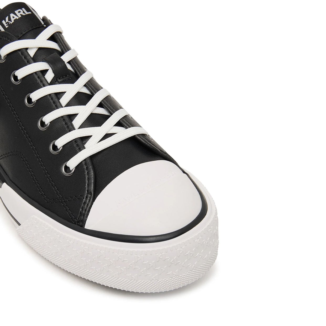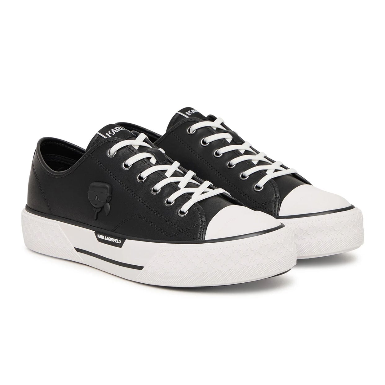 The Kampus Max III NFT Relief Lo Sneaker by Karl Lagerfeld is a statement low-top sneaker that merges contemporary street style with signature designer elements.