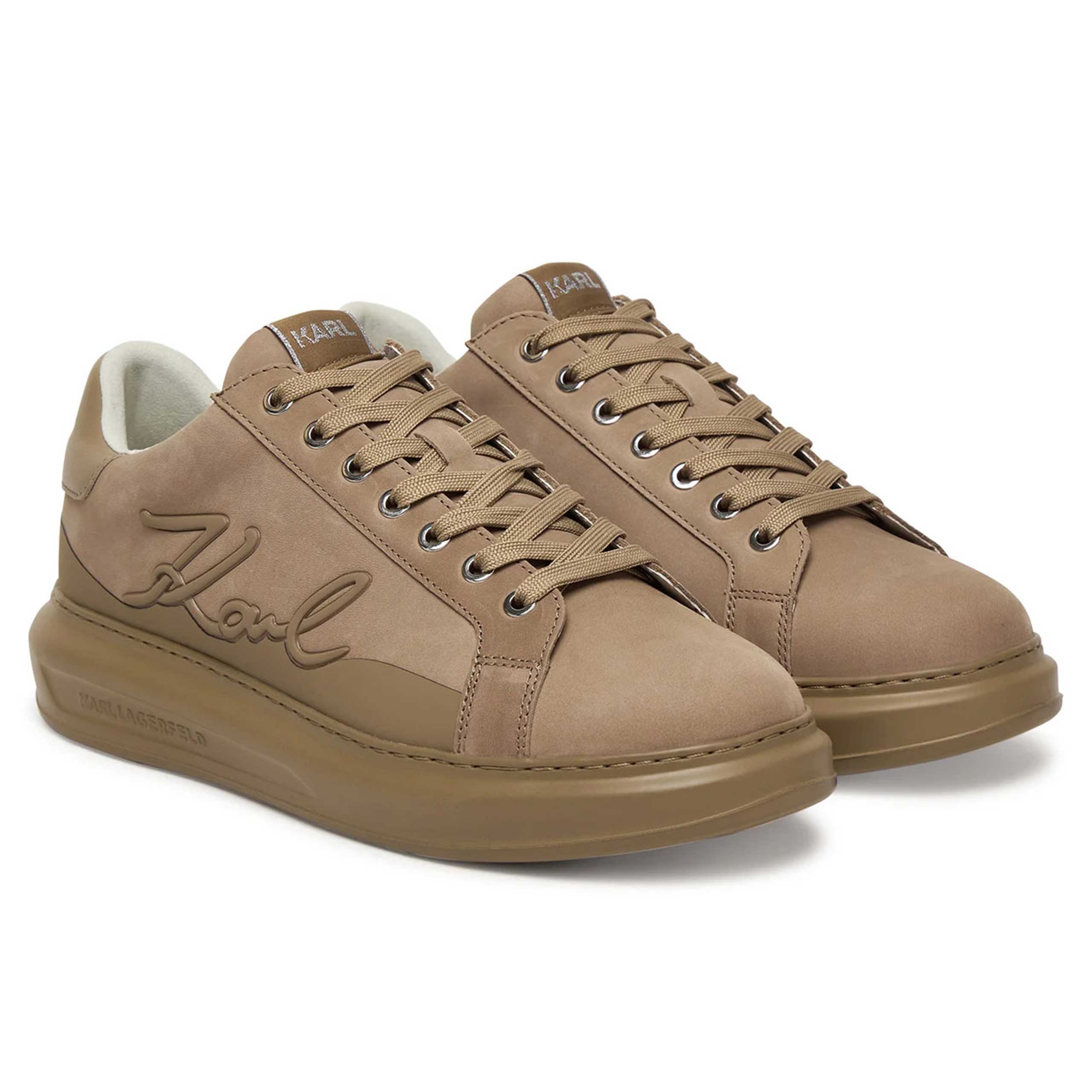 Effortlessly combining style and versatility, these sleek lace-up sneakers are anchored by the iconic Karl Signature. They pair perfectly with jeans or add edge to tailored looks.