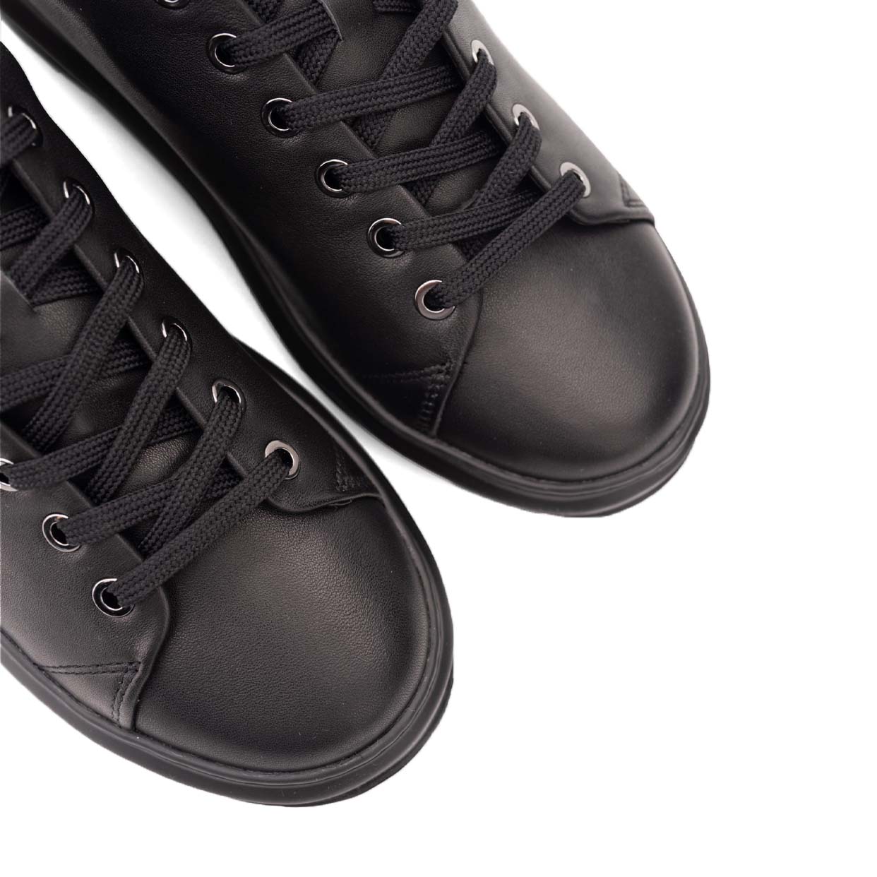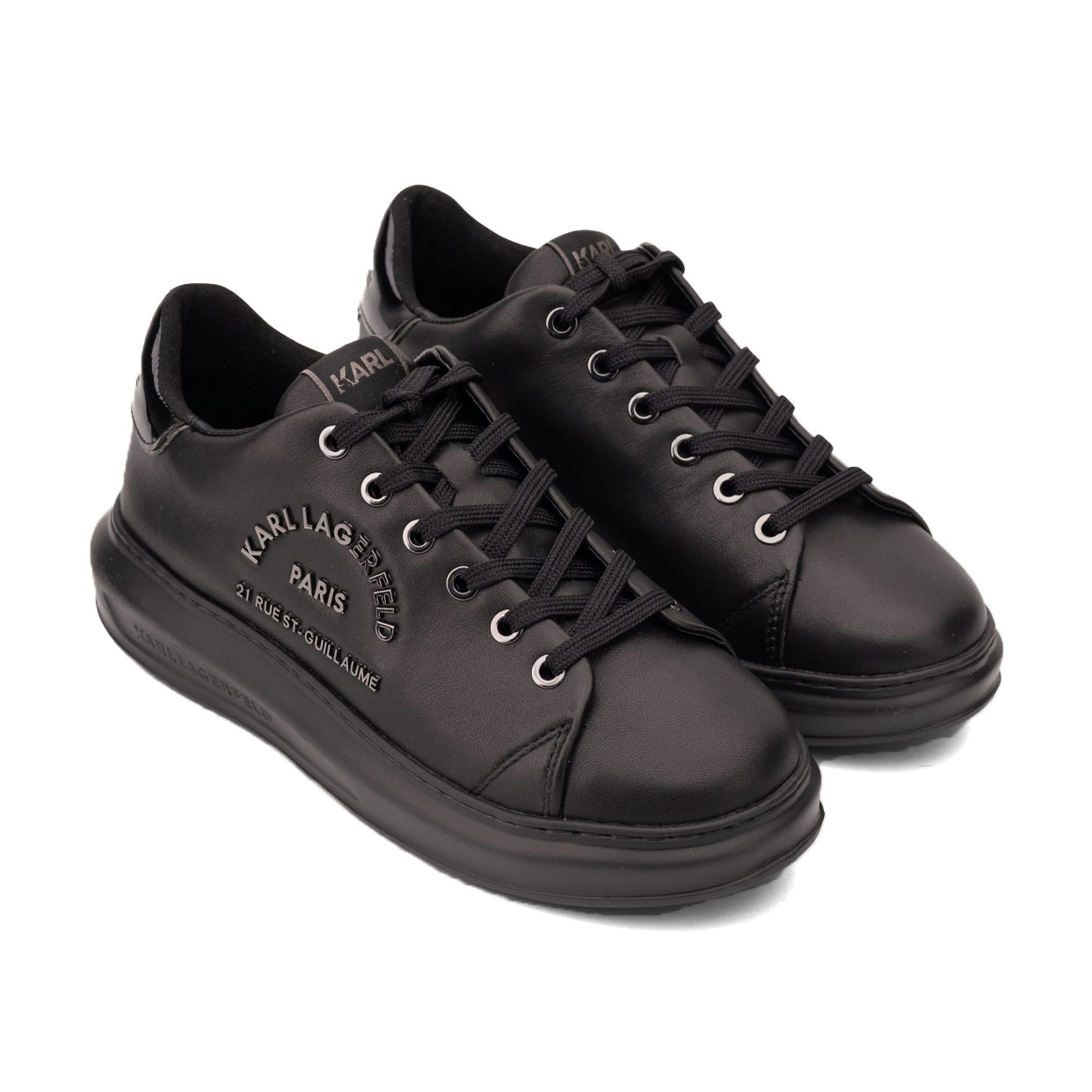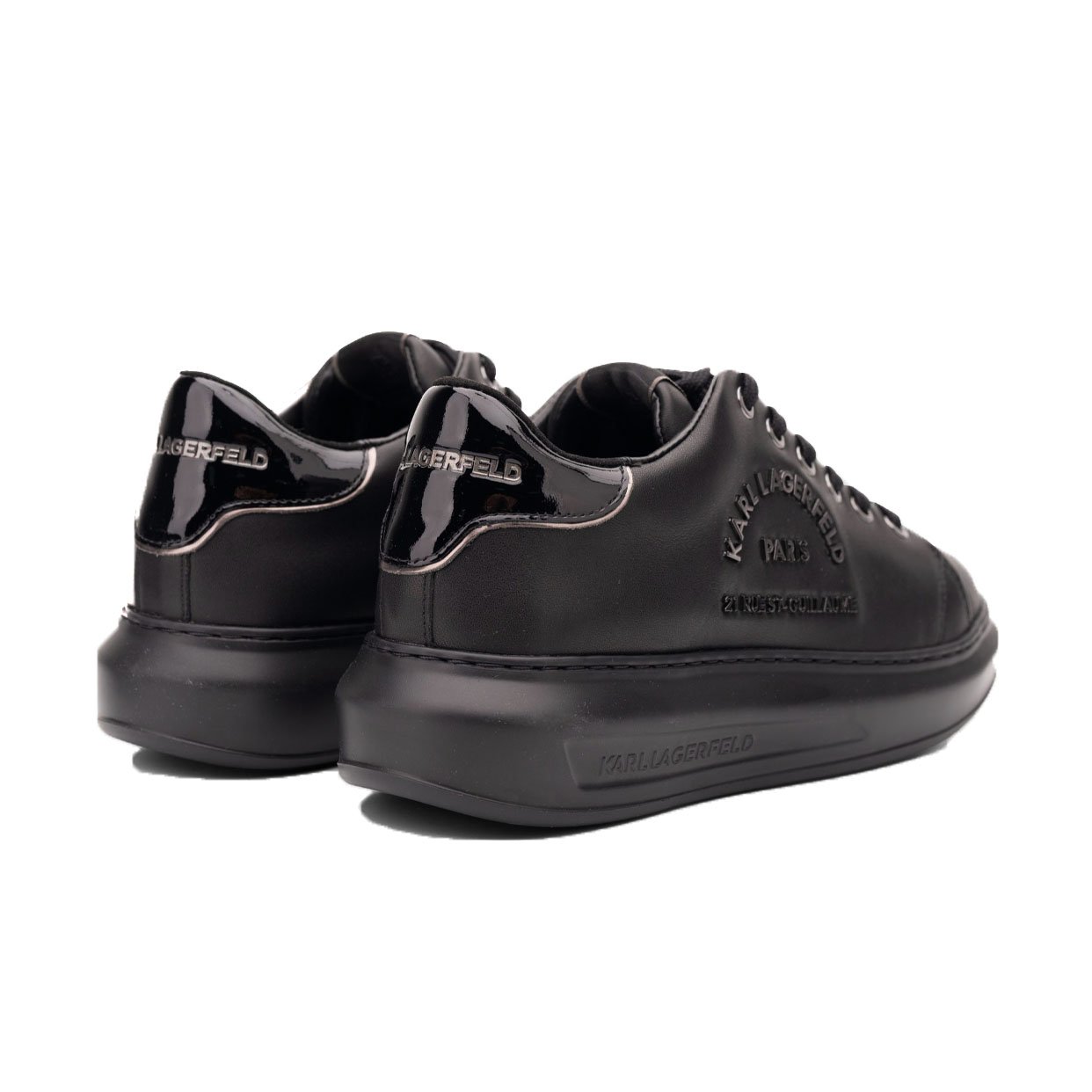 The iconic Maison KARL logo is reflected on the heel counter, framing a minimalist Nappa leather sneaker.