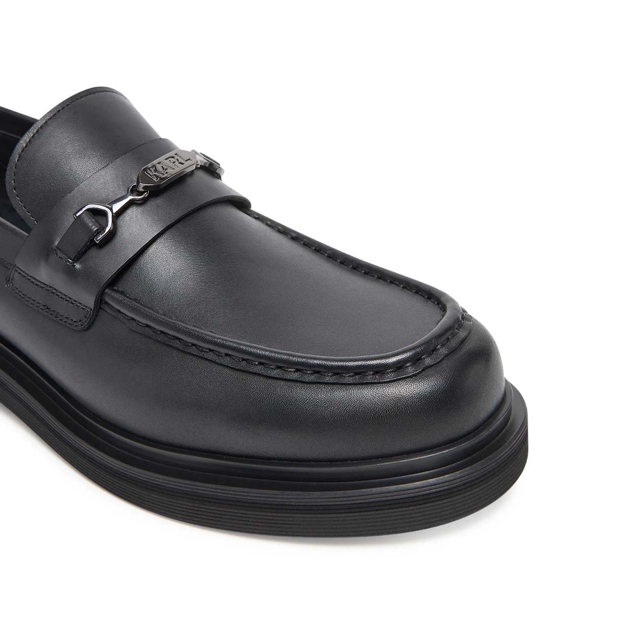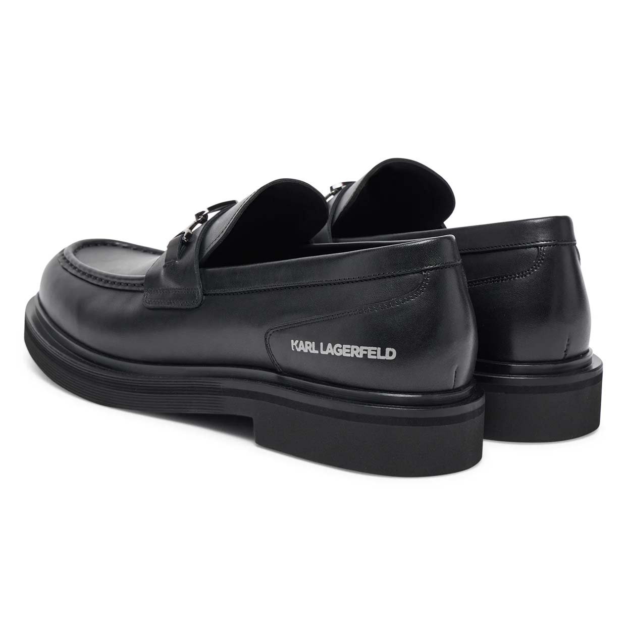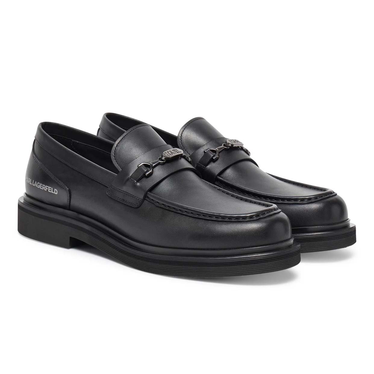 Luxury leather defines these timeless loafers, which seamlessly blend comfort with style. The saddle hardware adds a classic touch to the slip-on style, while the KARL LAGERFELD logo at the heel makes a bold statement.