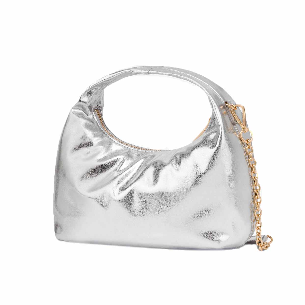 Laminated Fabric Handbag -Silver