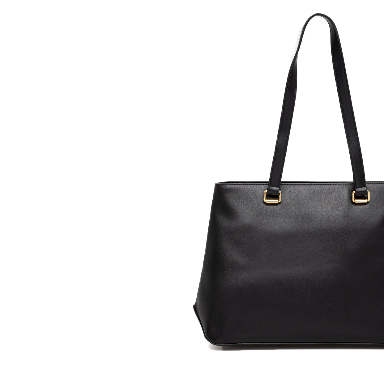 The Logo-Plaque Tote Bag is the perfect blend of sophistication and everyday practicality. Featuring a sleek, metallic logo plaque on the front, this tote bag adds a touch of luxury to your daily essentials. Its spacious, open-top design makes it ideal for carrying everything you need, from work documents and tech gadgets to personal items like makeup and snacks.
