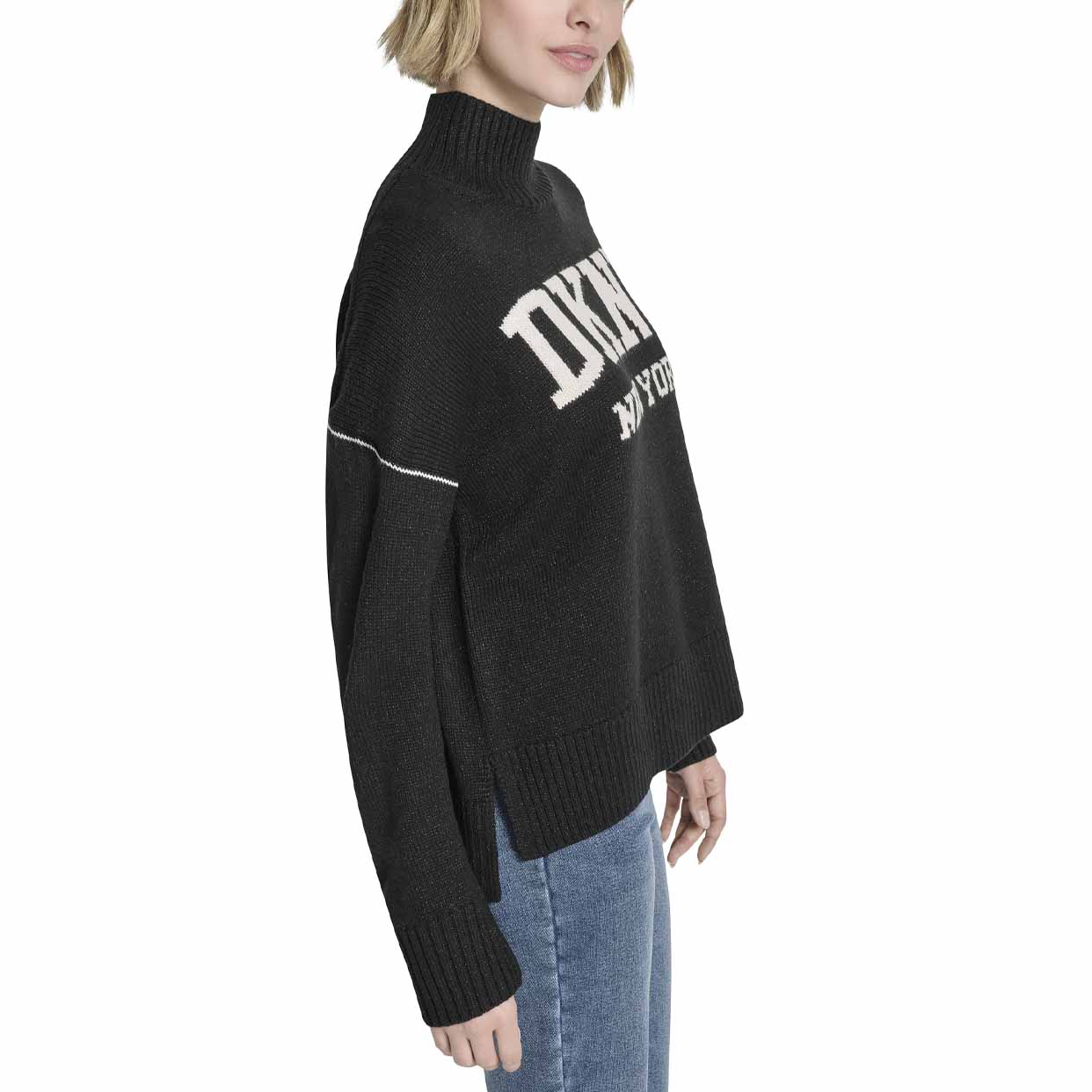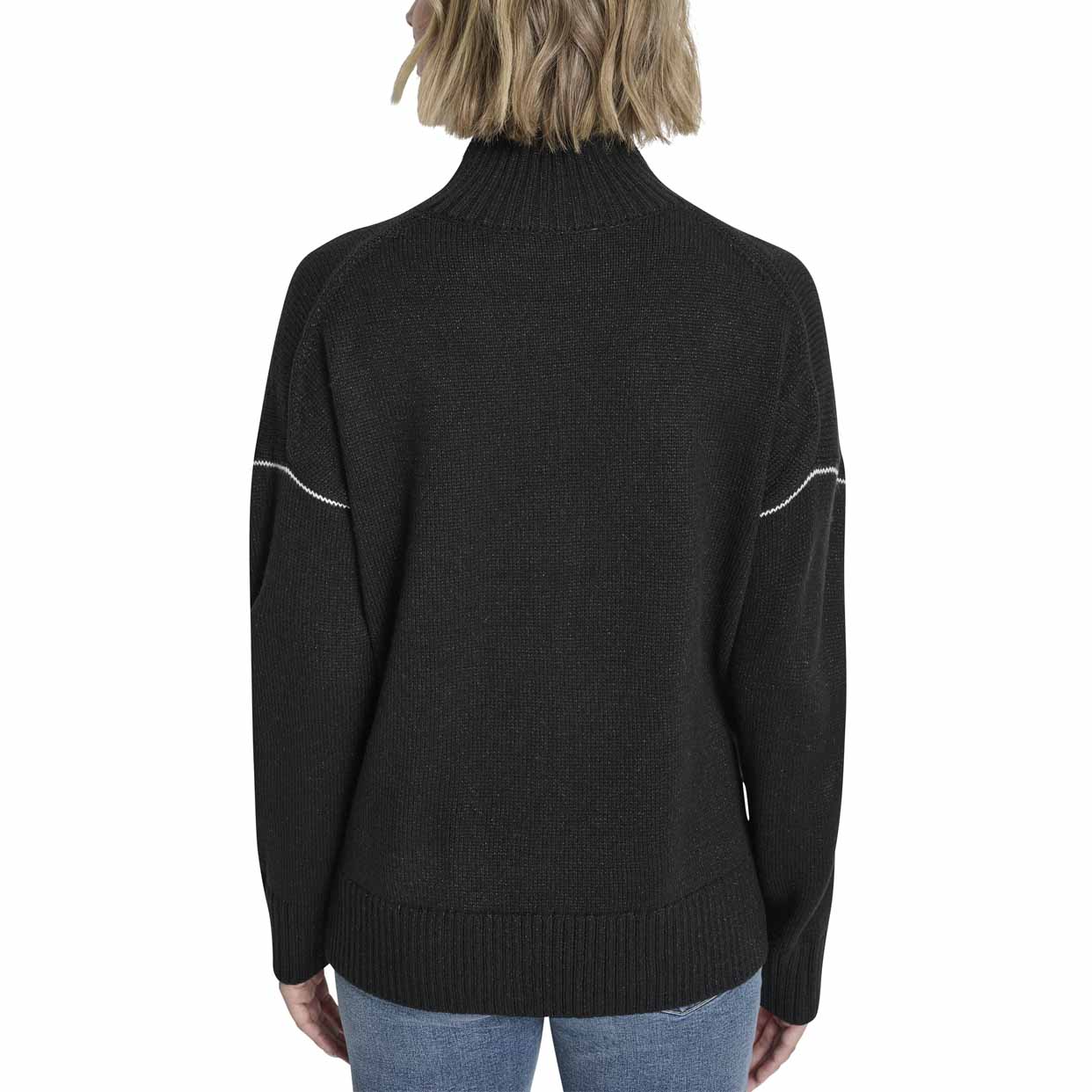 Logo Turtleneck High Low Sweater -Black/Eggnog