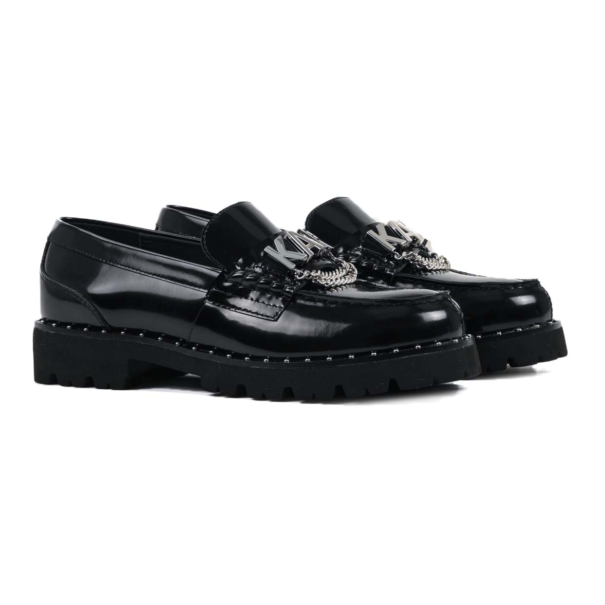 The Lowell charm loafer by Karl Lagerfeld is a chic, contemporary take on the timeless loafer silhouette, blending classic design with playful detailing. Crafted with a high-quality leather upper for a sleek, polished finish, this slip-on style sits on a sturdy synthetic sole that offers everyday wearability with a modern edge.