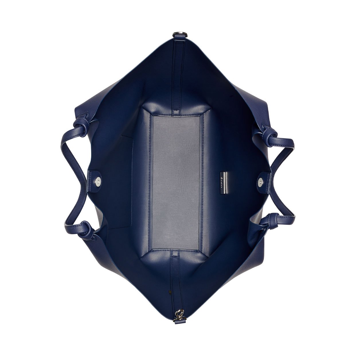 - Exterior back slip pocket; detachable pouch; dual top-knot handles; magnetic snap tab fastening