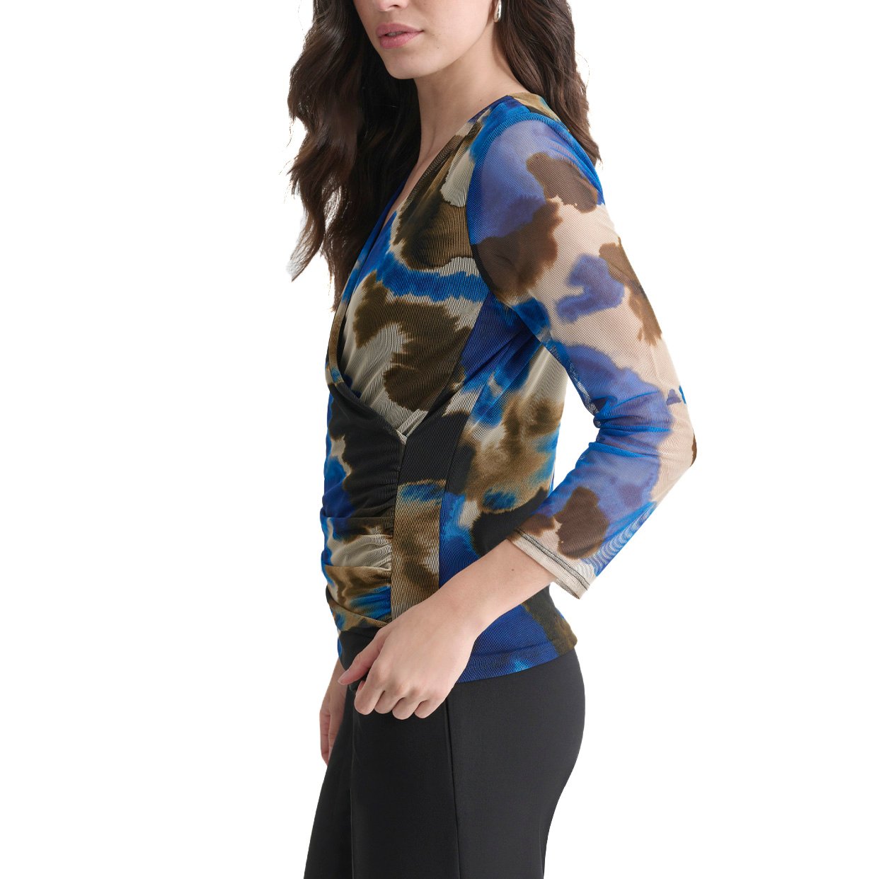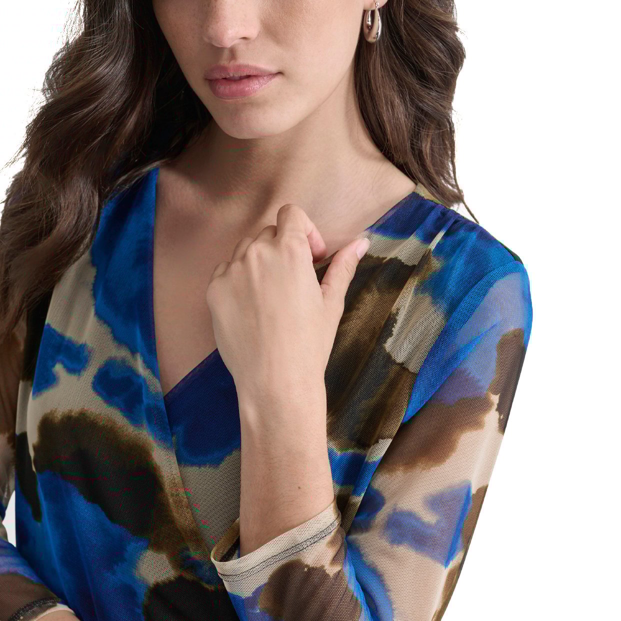 The Printed Mesh Blouse is a stylish and airy piece that adds a touch of elegance and playfulness to any wardrobe. Whether paired with jeans, skirts, or trousers, this blouse adds a unique and fashionable touch, making it a versatile choice for any occasion.