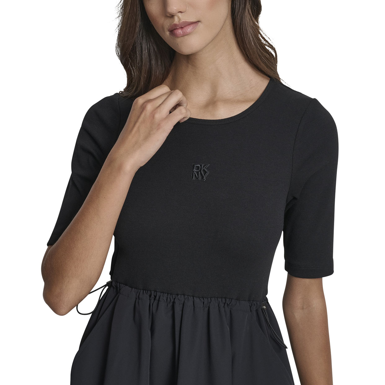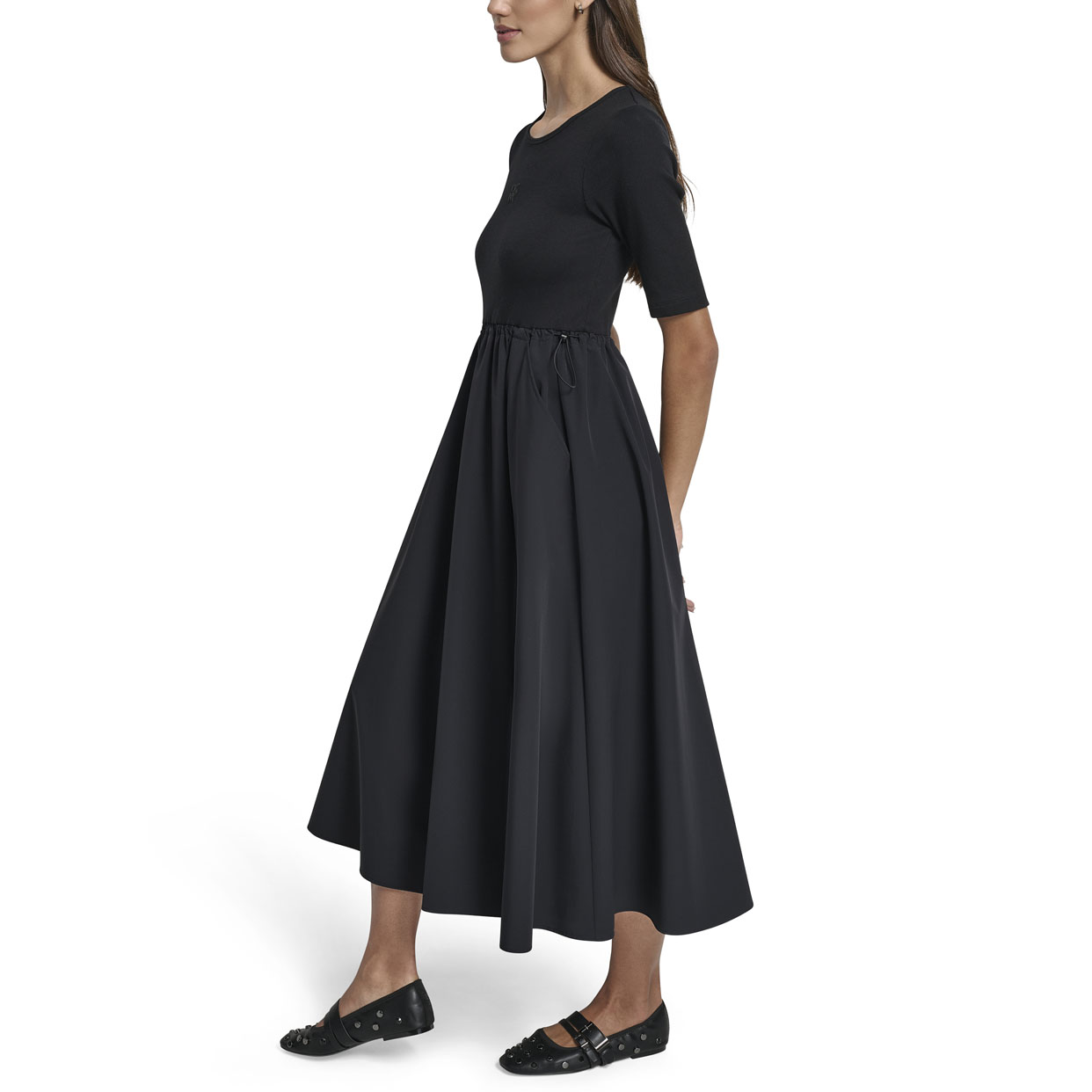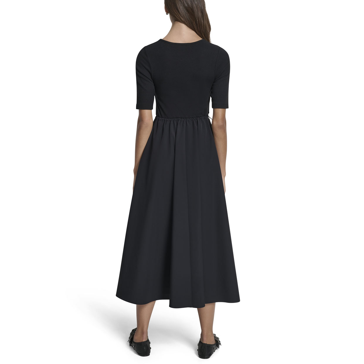 Rib Tank Dress With Poplin Skirt -Black