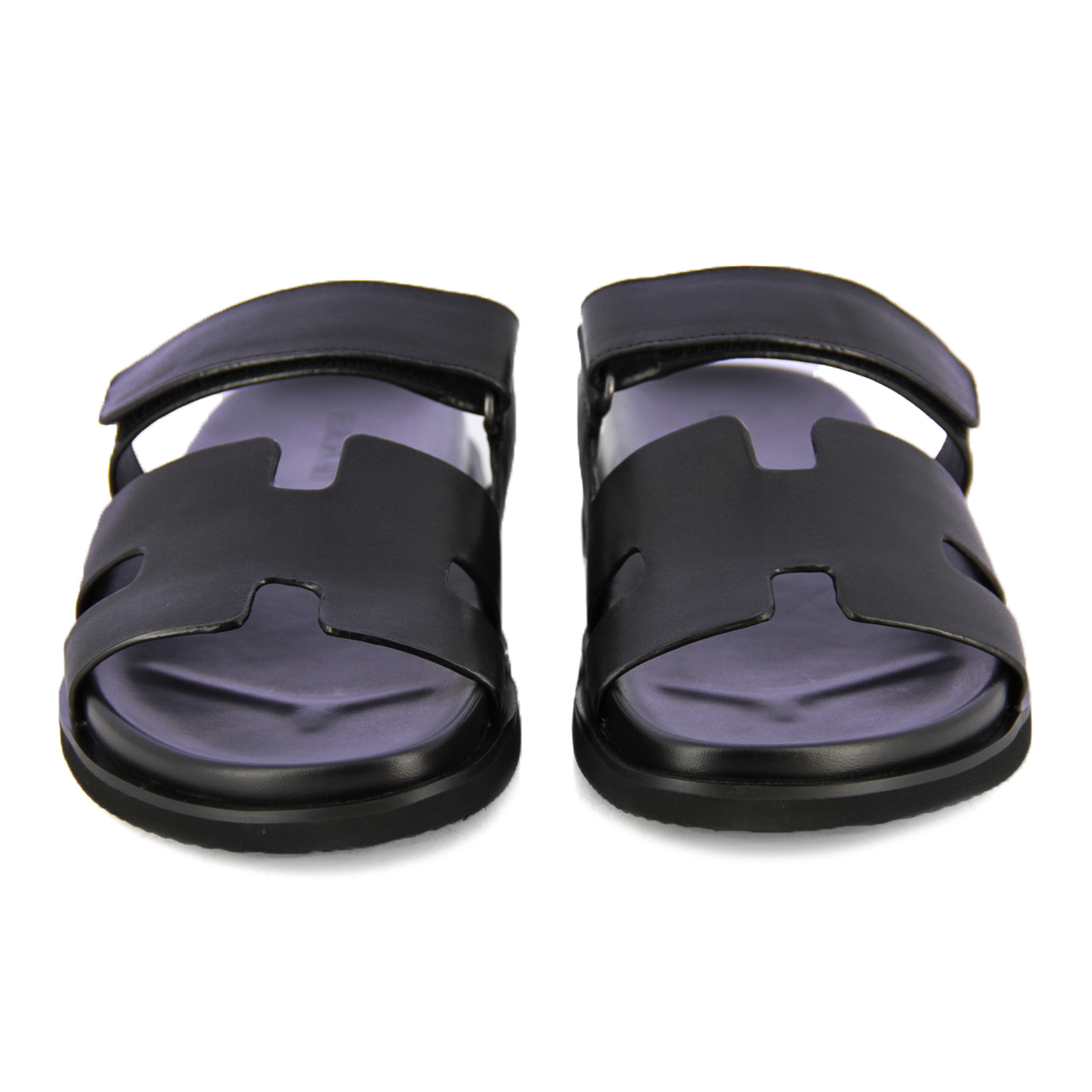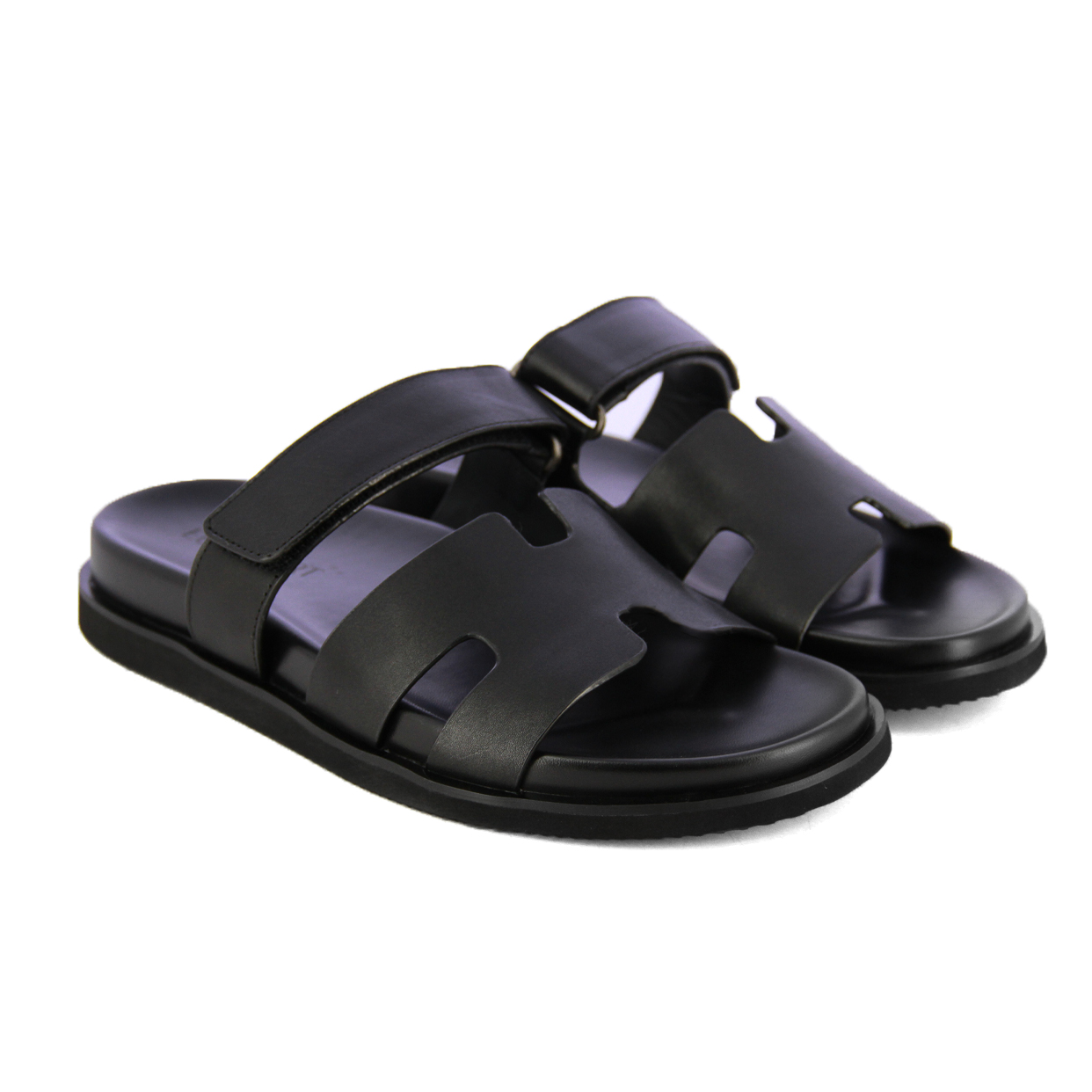 Slip-On Leather Slides -Black