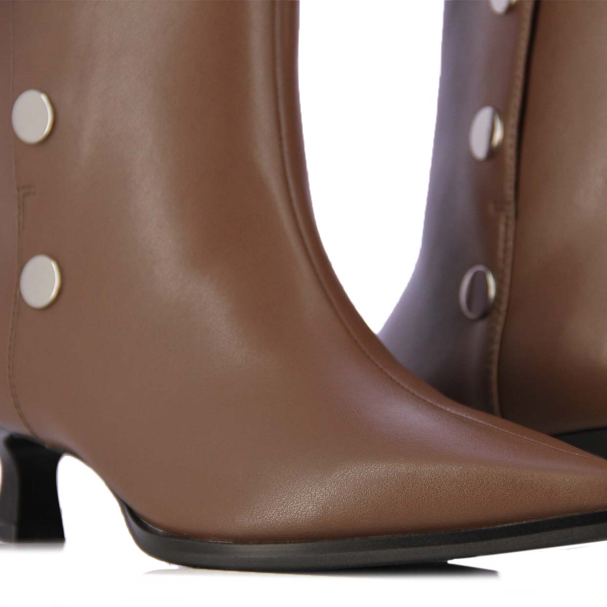 Turn up the attitude with this statement-making stud ankle boot. Designed with striking metal stud detailing, it brings the perfect balance of edge and sophistication. The sleek ankle-height silhouette flatters the leg, while the sturdy heel ensure confident, all-day wear. Pair it with skinny jeans or a leather jacket for an effortlessly cool finish.
