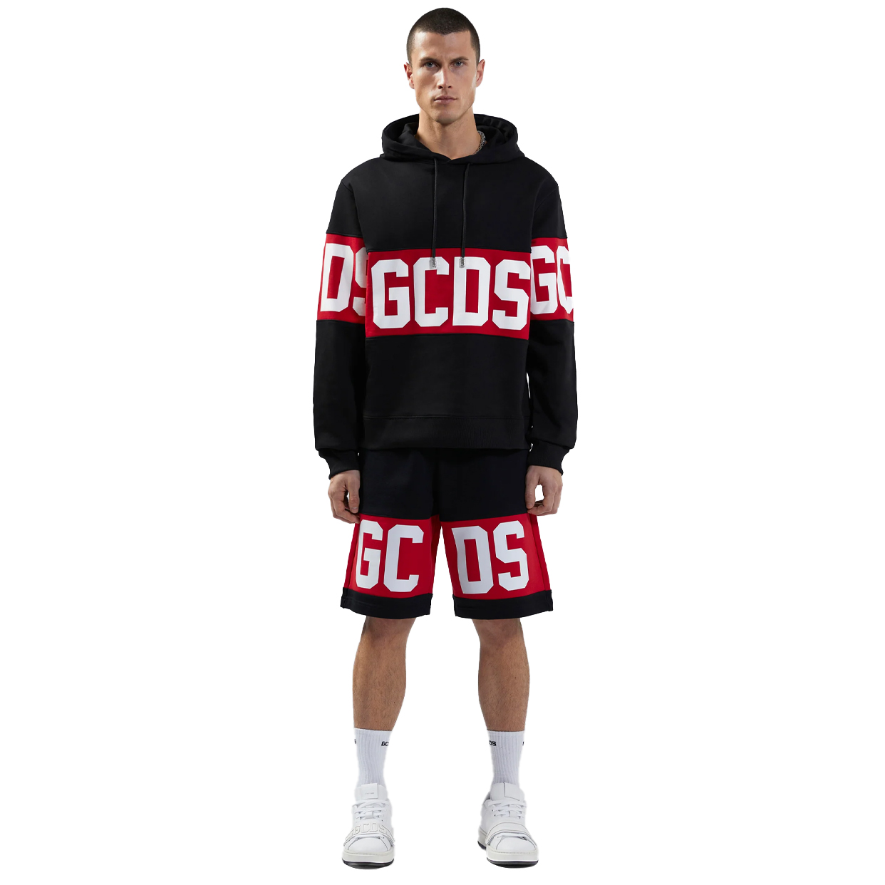 Cotton shorts with contrasting logo band applied on the front and back. Side pockets. Regular fit. Sport meets style in the Tracksuit Shorts With Band Logo. Designed for movement and comfort, these shorts are crafted from smooth, breathable fabric with a relaxed athletic fit. The standout feature—a bold logo band—adds a dynamic edge, making them perfect for workouts, casual wear, or street-ready styling.