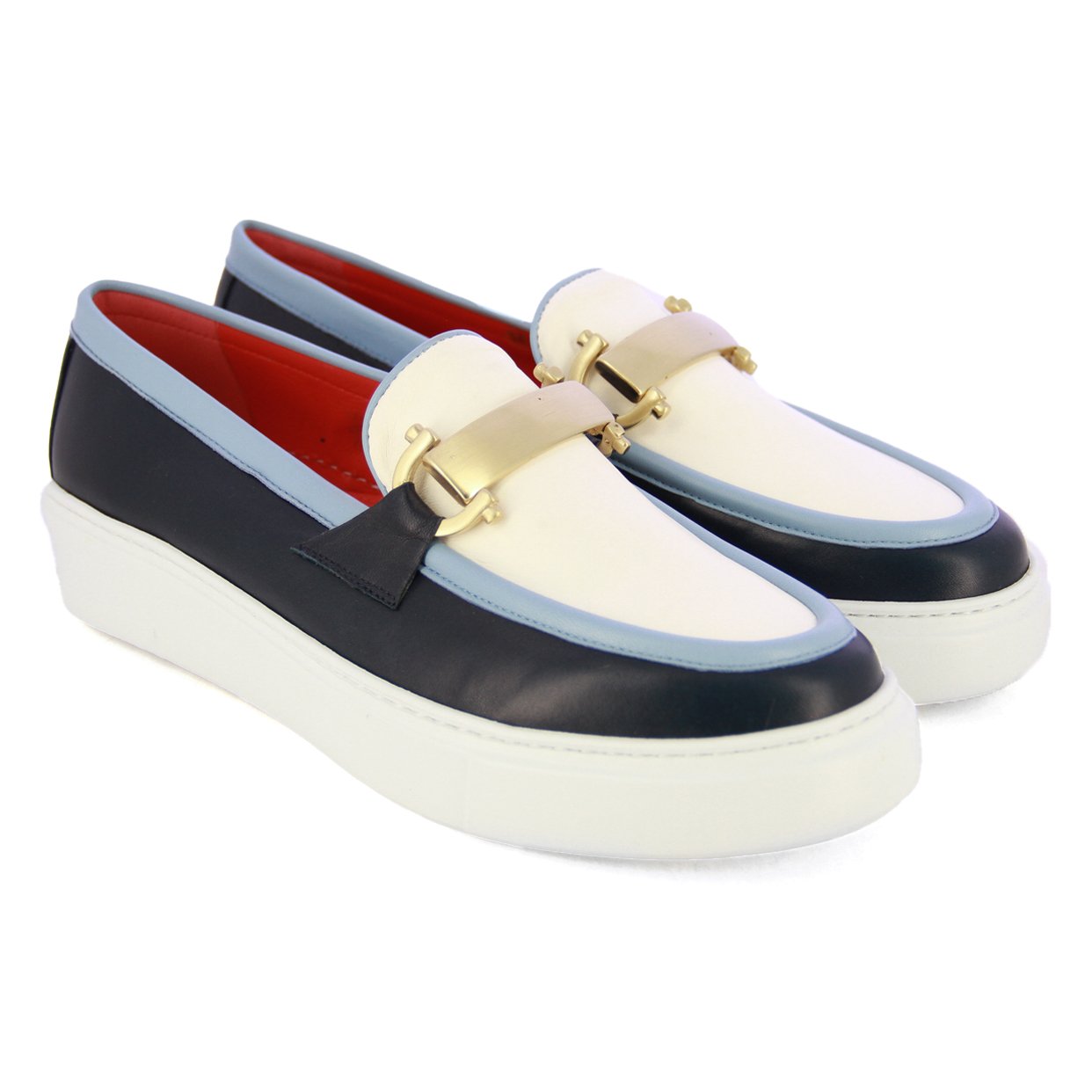 Two-Tone Leather Loafers -Blue